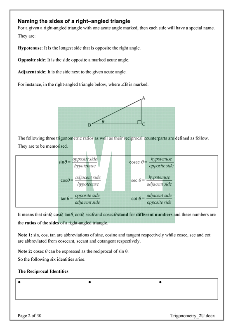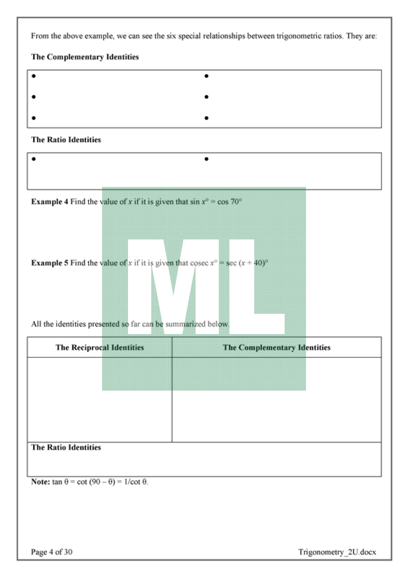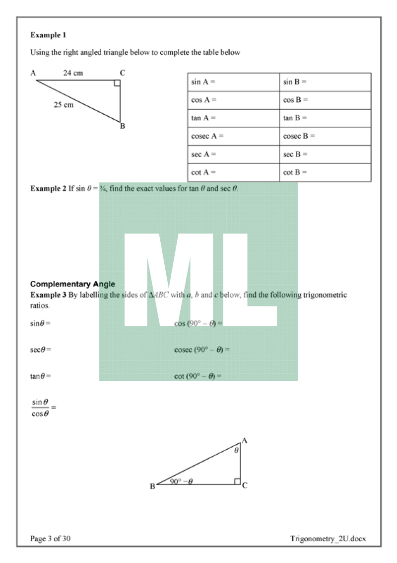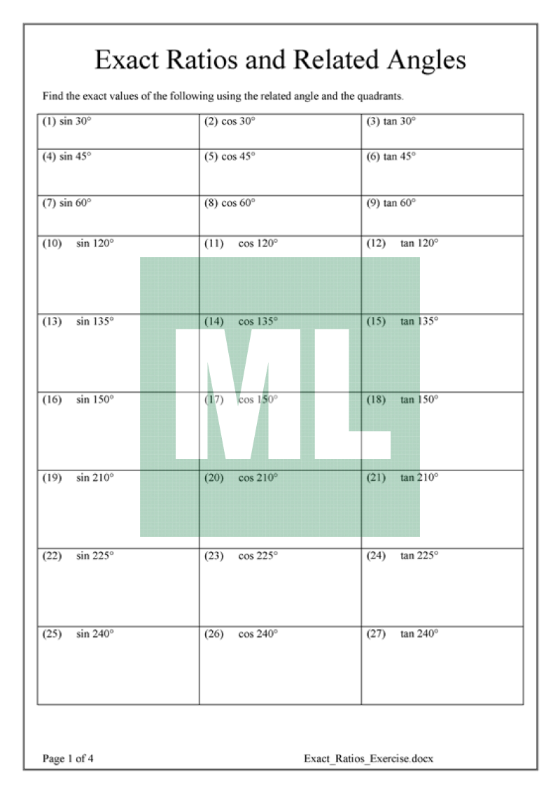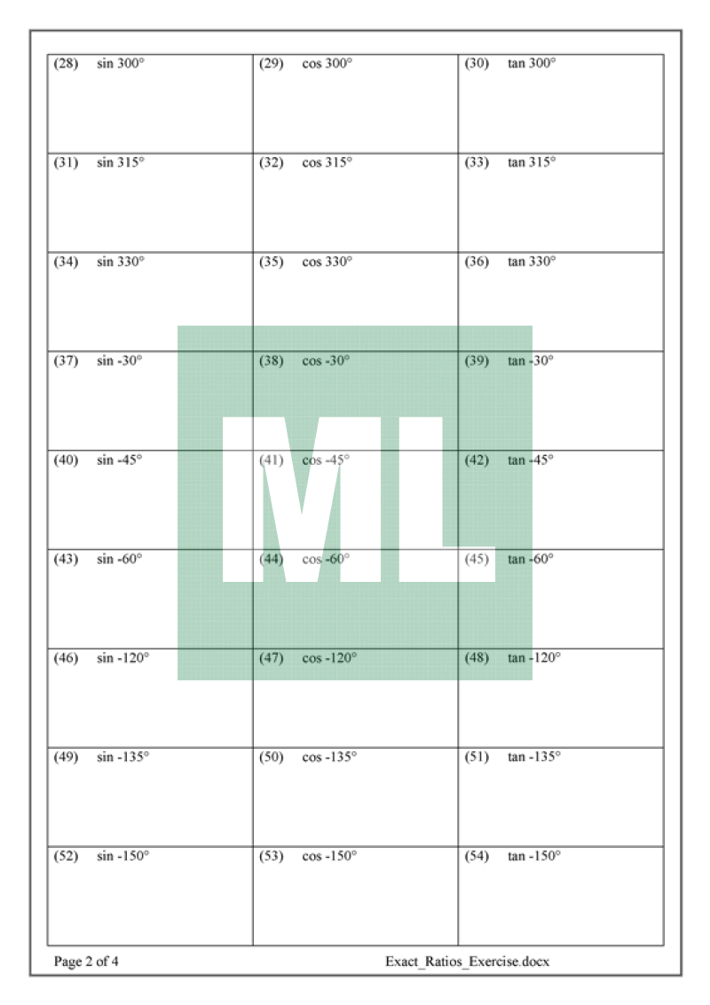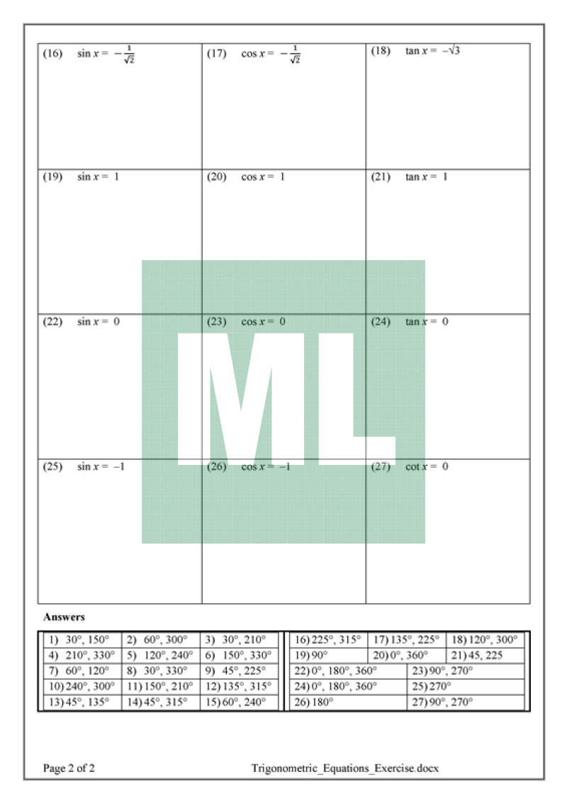 Examples on 2U Trigonometry topic. Drill Exercises on exact ratios and solving trigonometric equations to increase student confidence.