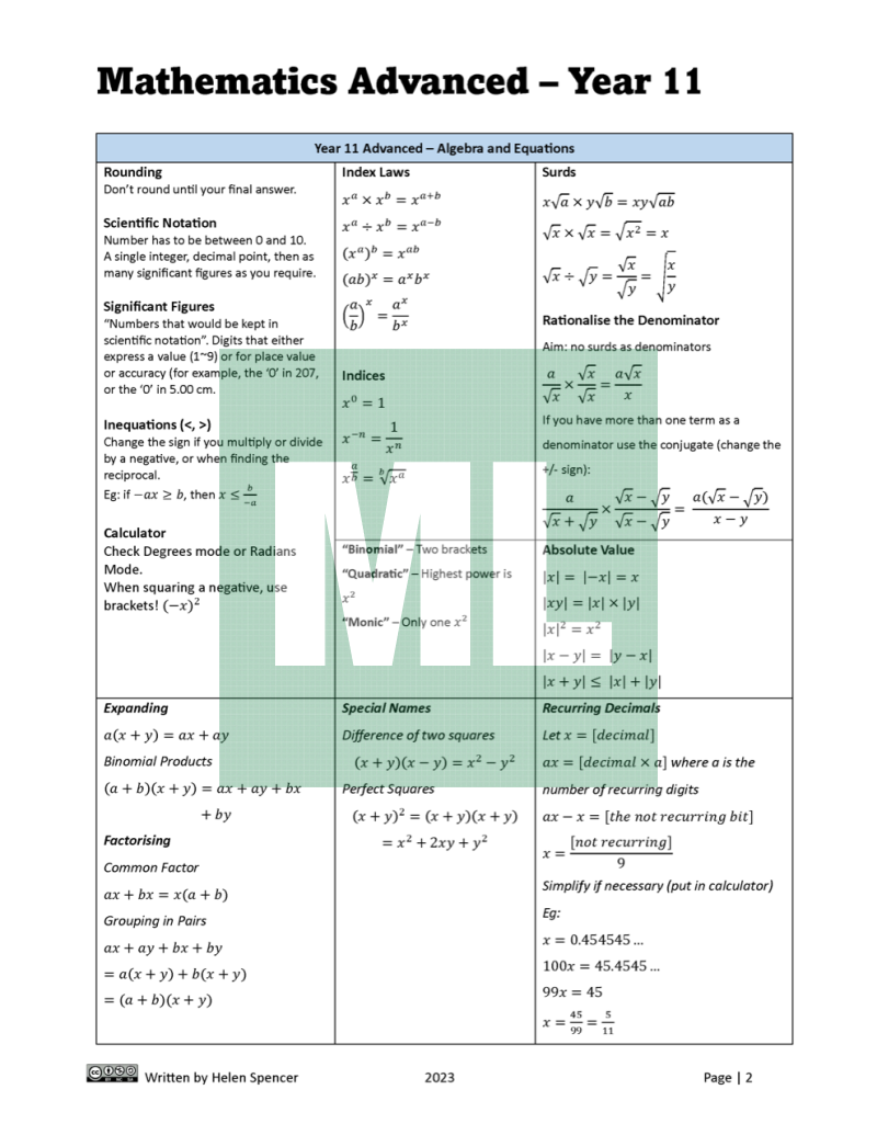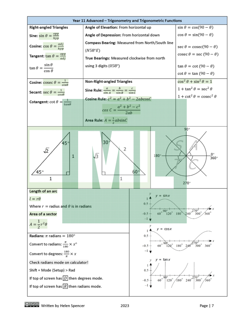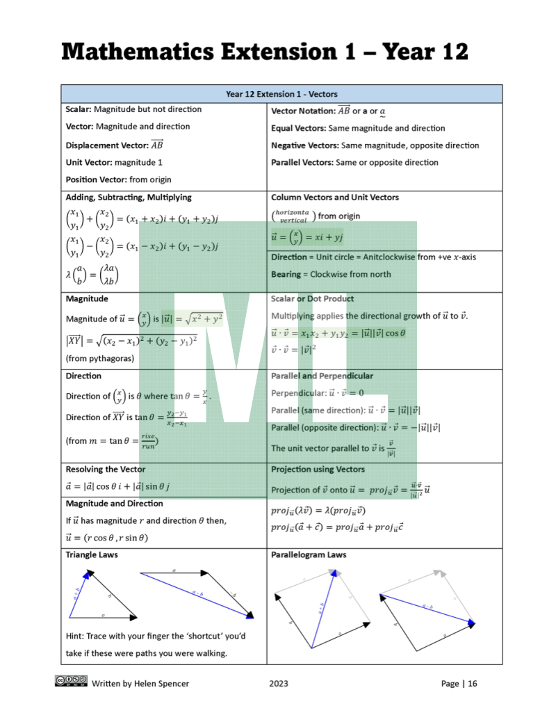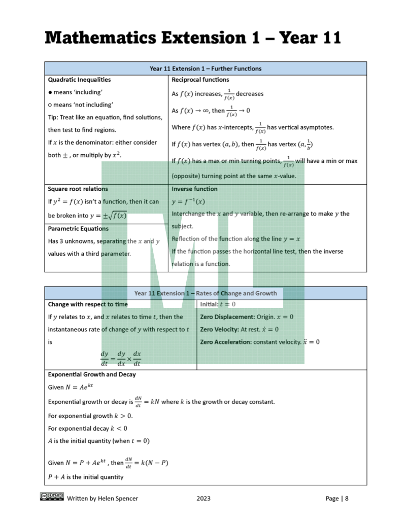 A revision book for NSW Mathematics Advanced and Extension 1.