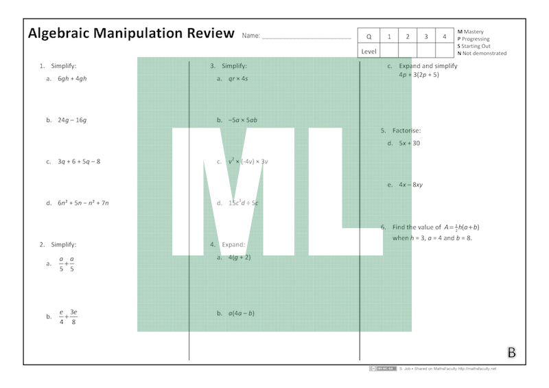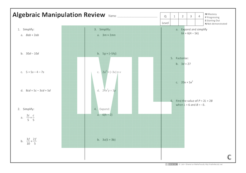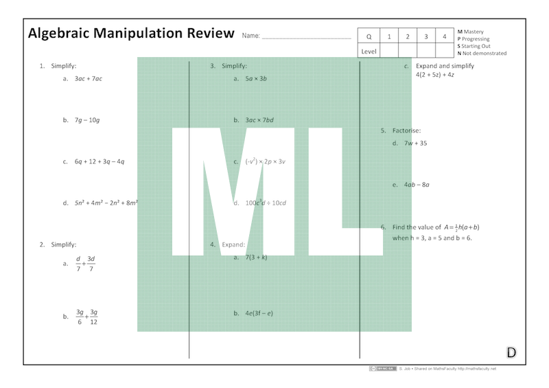 This set of four quizzes (A, B, C, D) was designed for reviewing Algebraic Manipulation with Year 12 General 1 students beginning AM3CEC: Further algebraic skills.