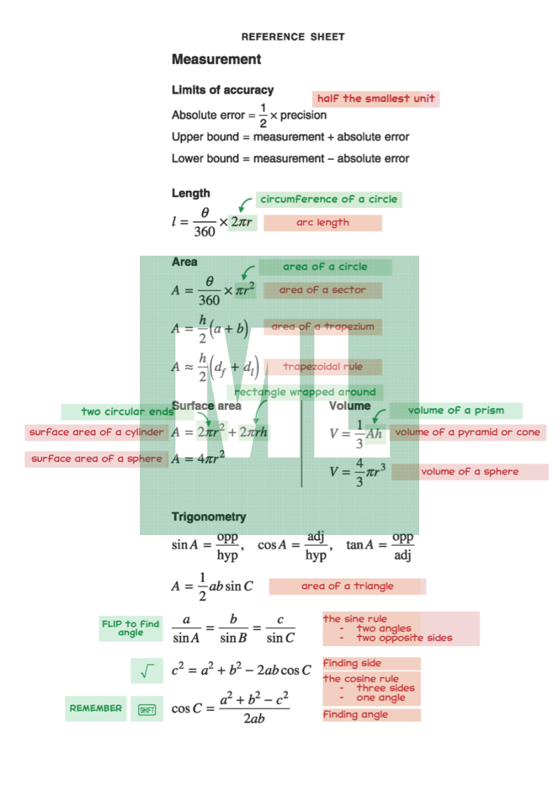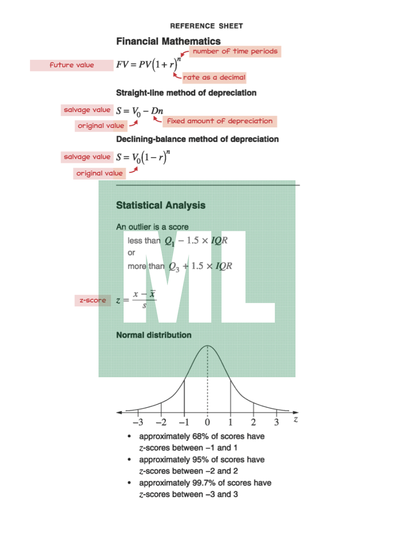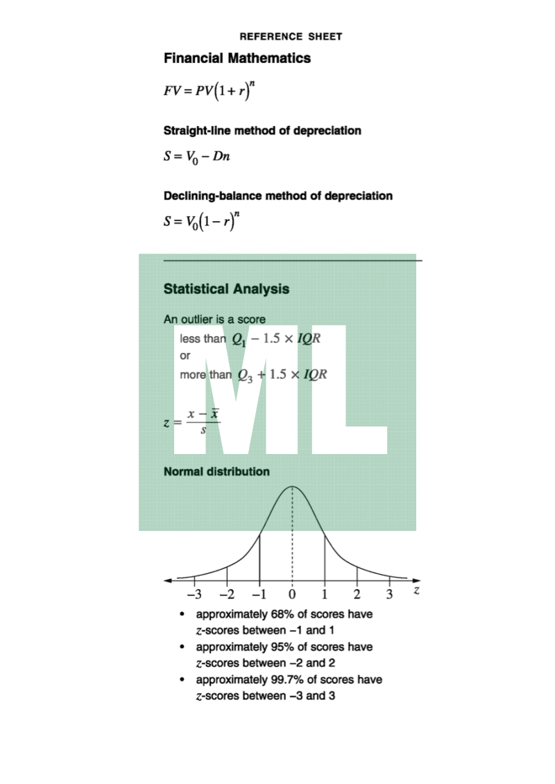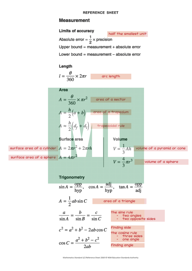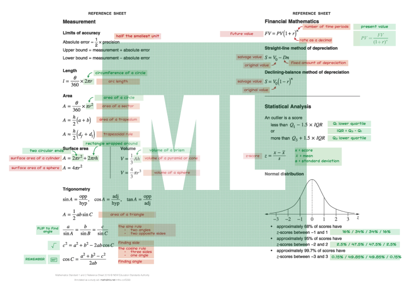 Attribution: Mathematics Standard 1 and 2 Reference Sheet © 2018 NSW Education Standards Authority