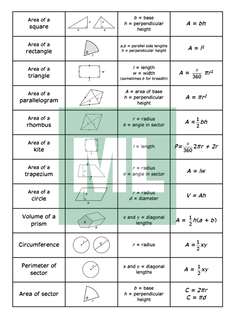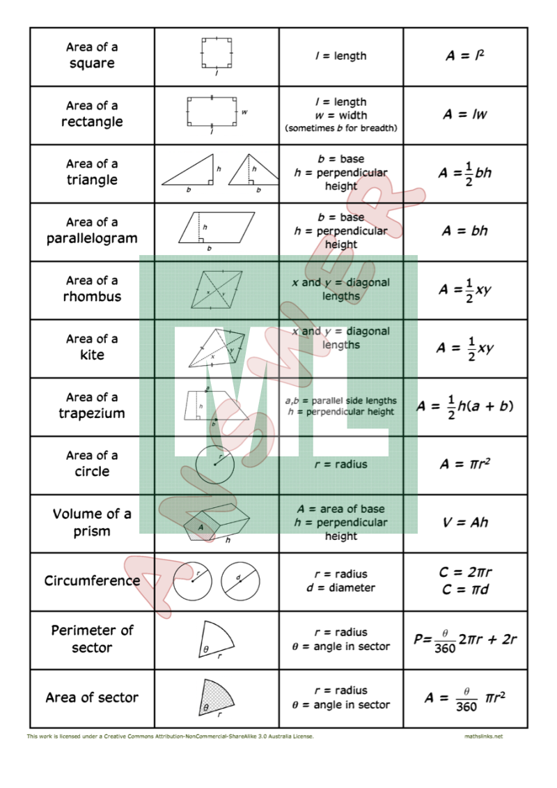 A matching activity for area, volume and circumference formulas.