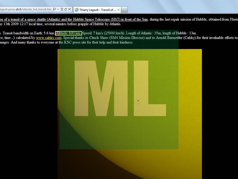 Transit of Atlantis and Hubble in front of the Sun - Thierry Legault