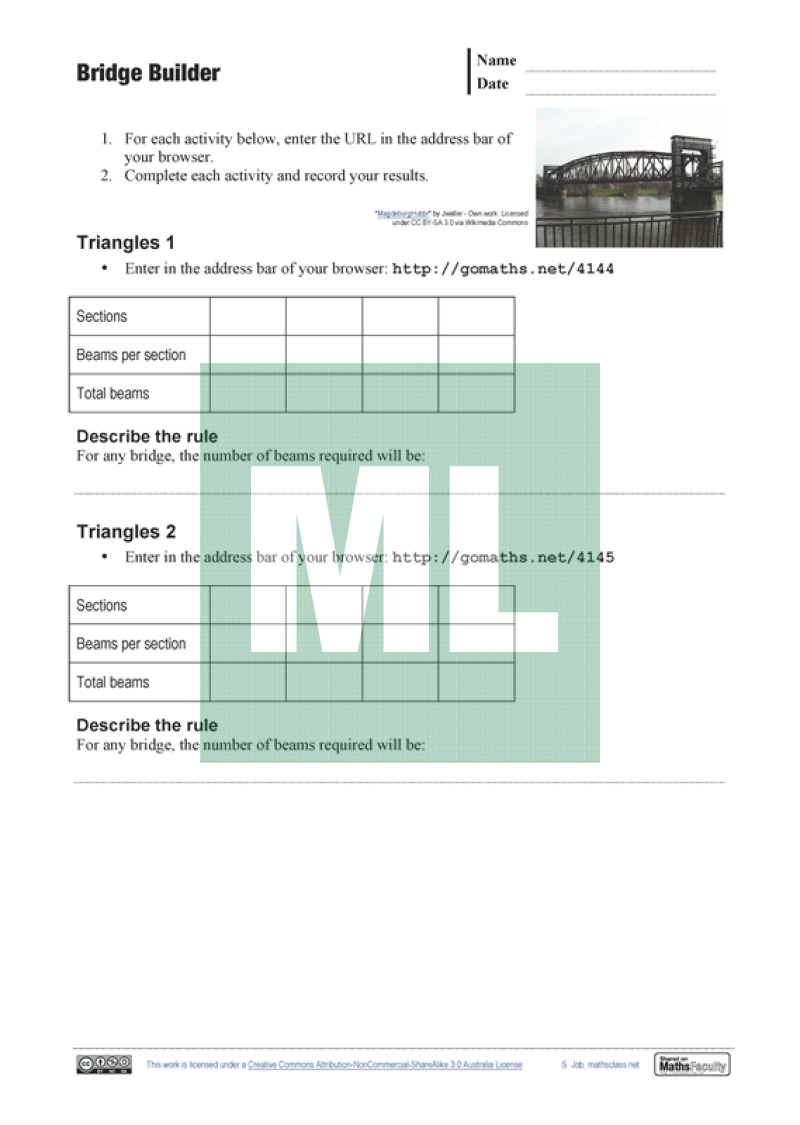 A worksheet to accompany the Bridge Builder interactives by Education Services Australia.