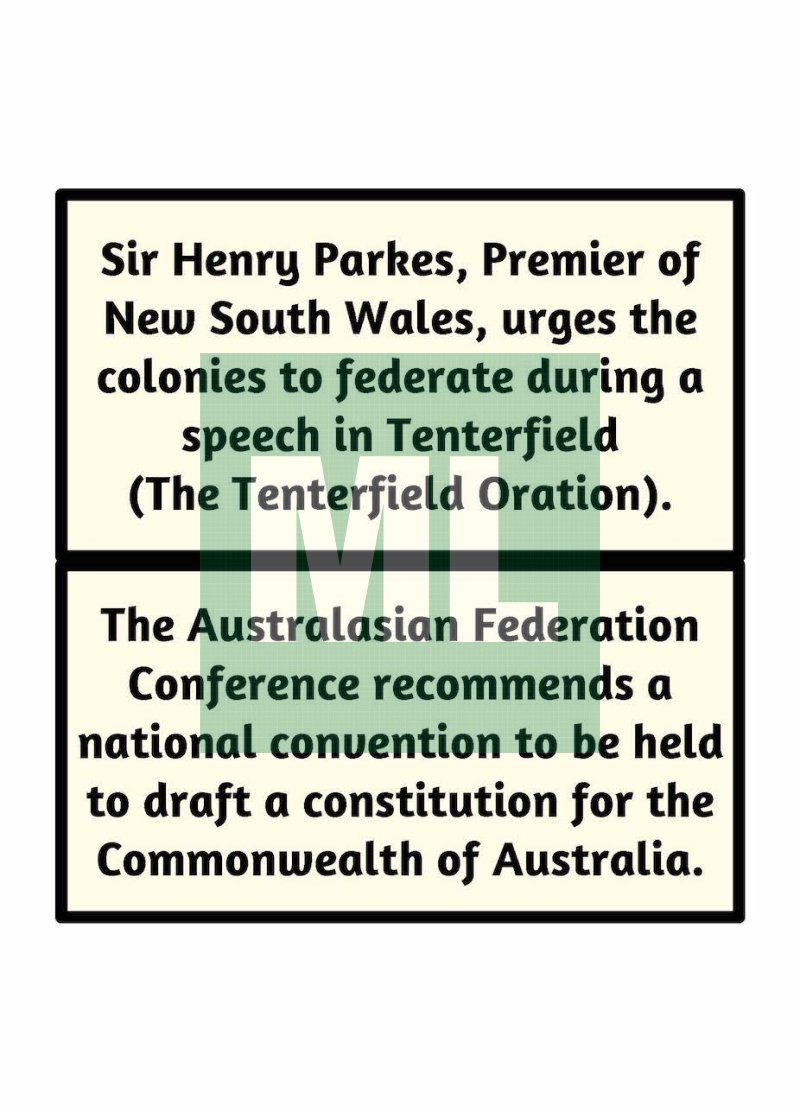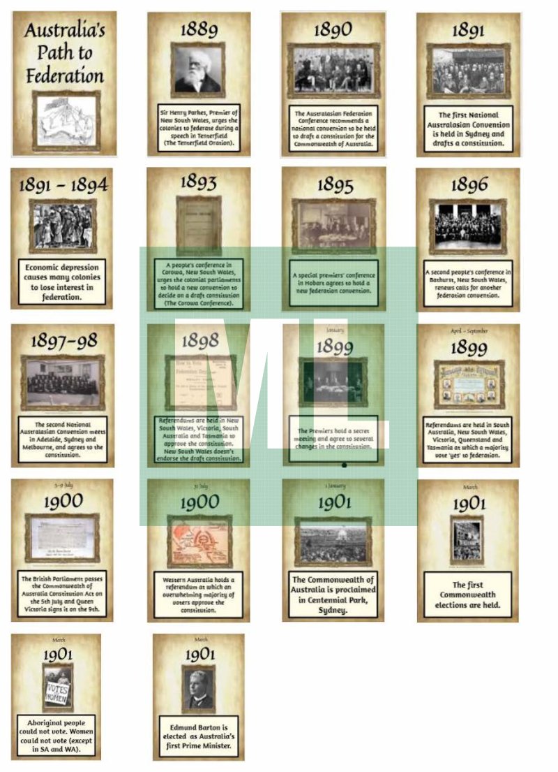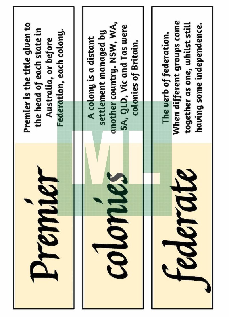 This activity partly covers the Stage 3 syllabus content “Key figures and events that led to Australia's Federation, including British and American influences on Australia's system of law and government.“