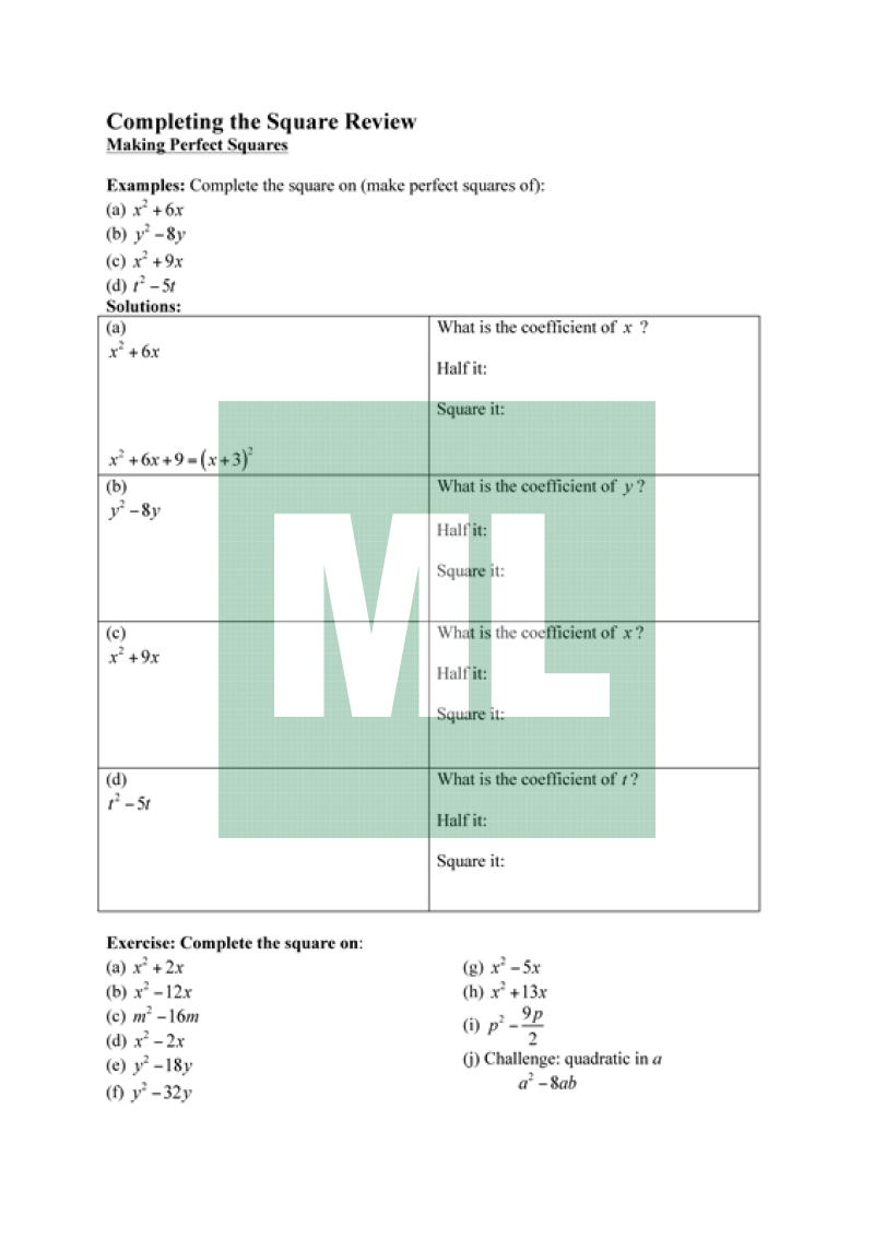 Scaffolds the thought process of completing the square. Additional instructions can be added for dealing with non-monic quadratics.