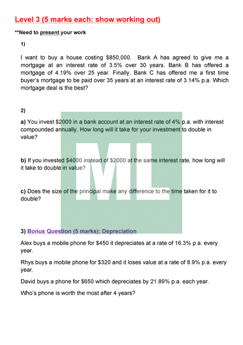 I just did an activity with my year 10 on Compound Interest (Relay questions with 3 levels).