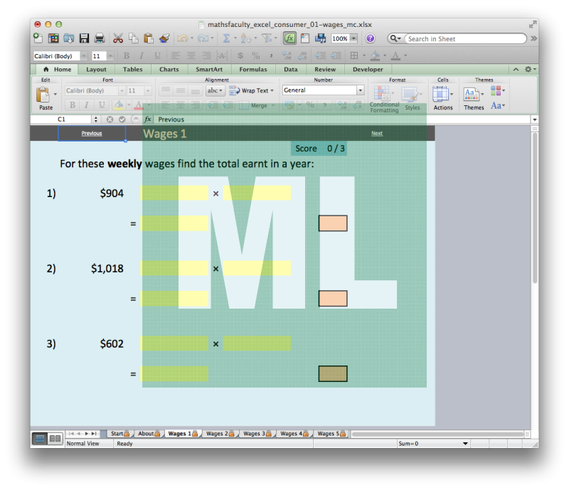 A series of electronic worksheets (in Excel) to cover the ‘earning money’ part of a Consumer Arithmetic topic.