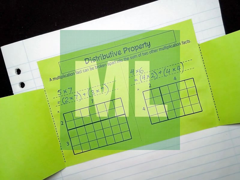 A paper foldable for recording the distributive property/law in students' books.