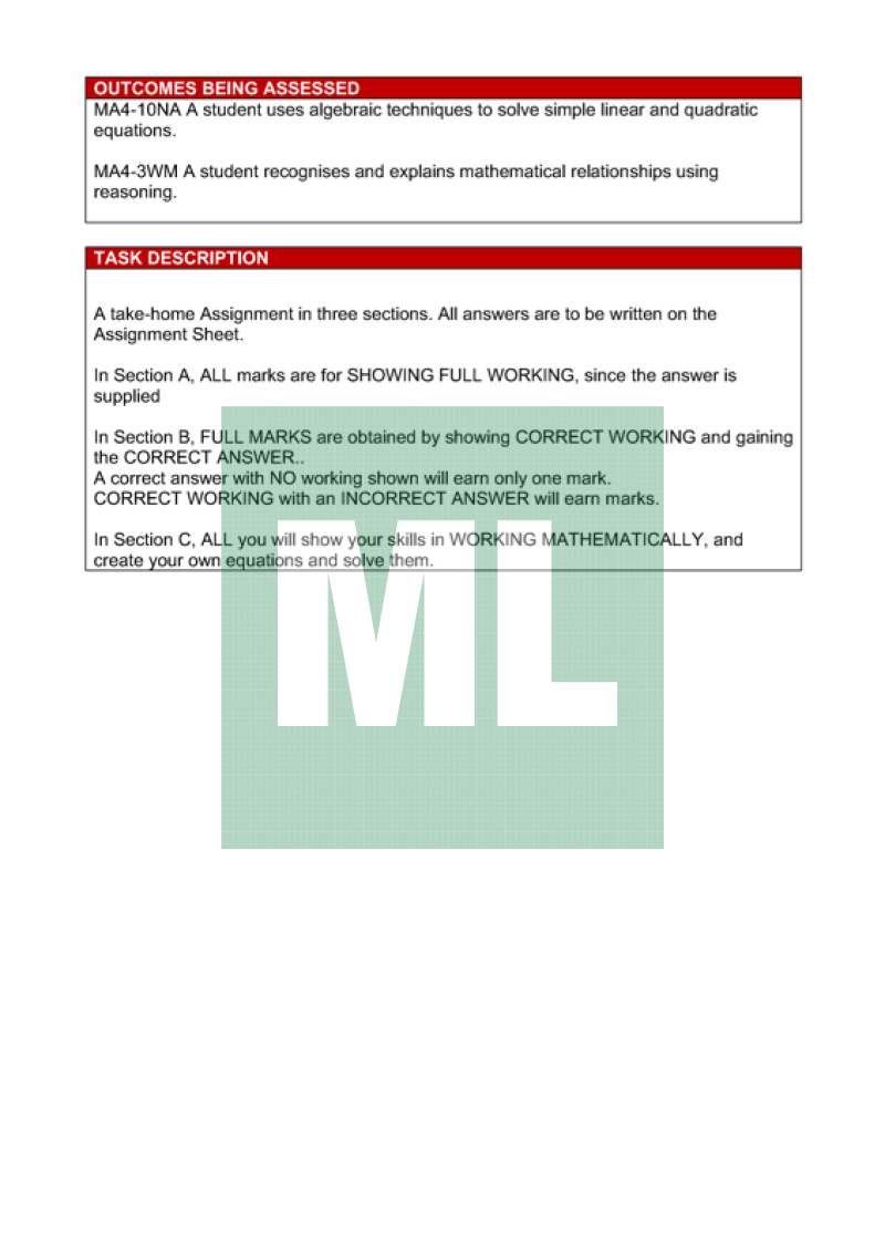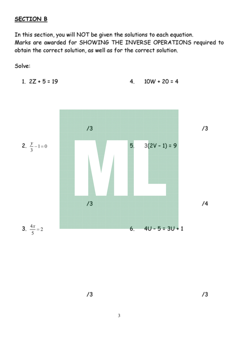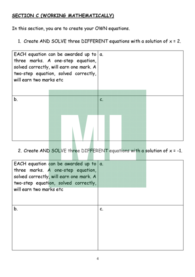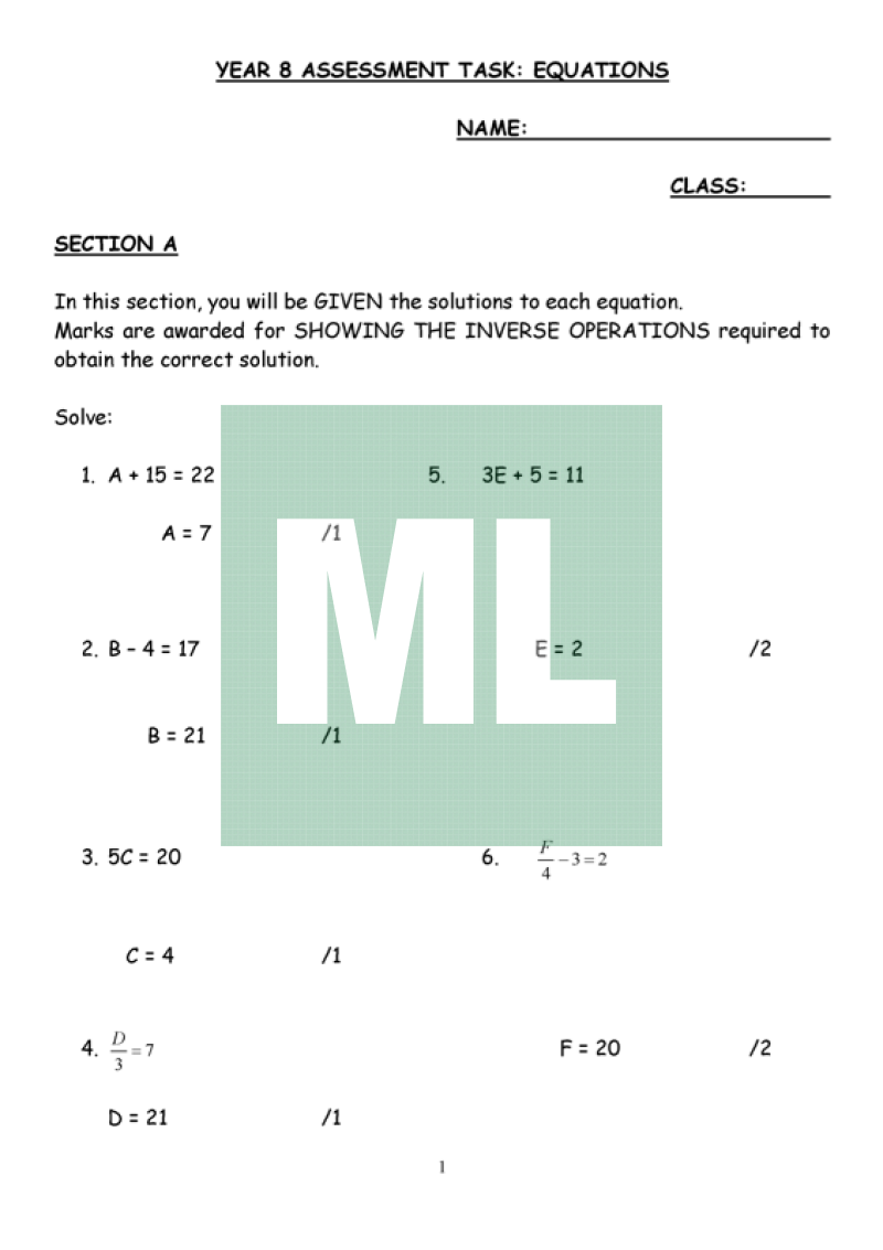 An assignment designed for Year 8 about solving equations using formal methods.