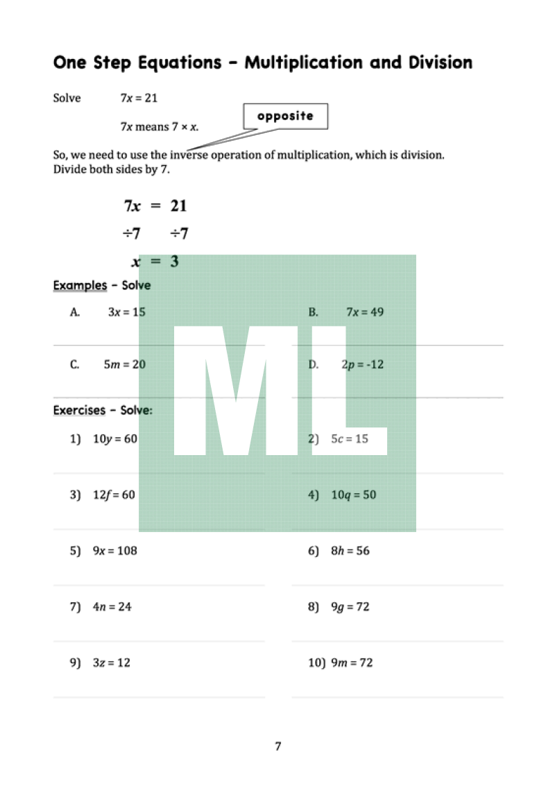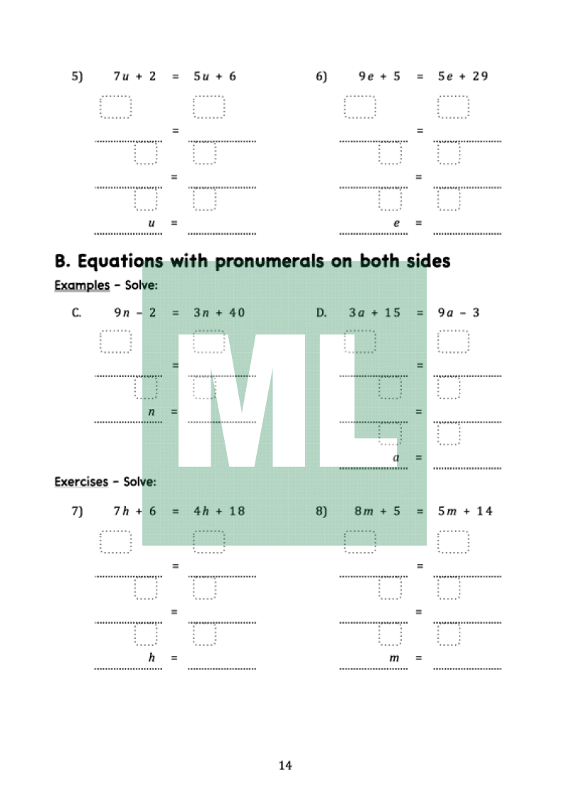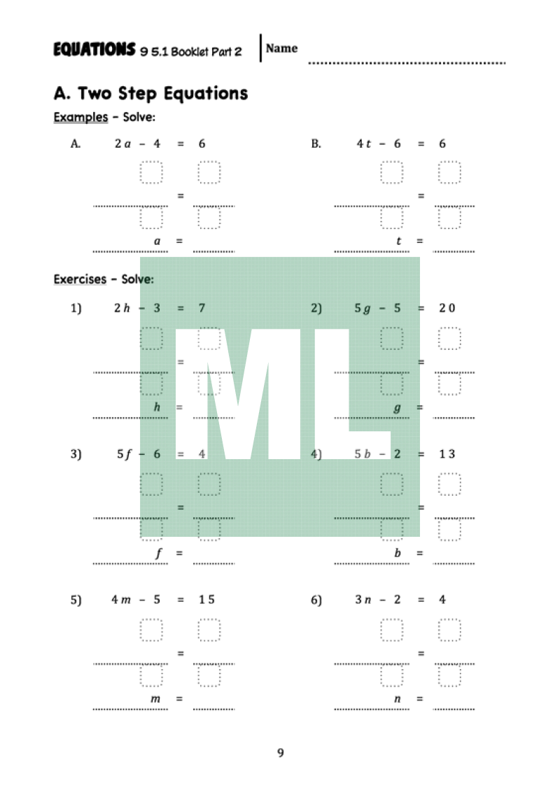 A scaffold booklet of solving equations. Aimed at Year 9 5.1* students.