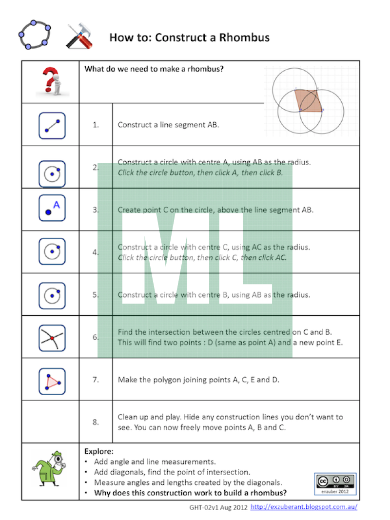 Student guide to constructing a rhombus in GeoGebra