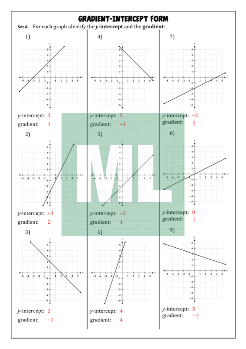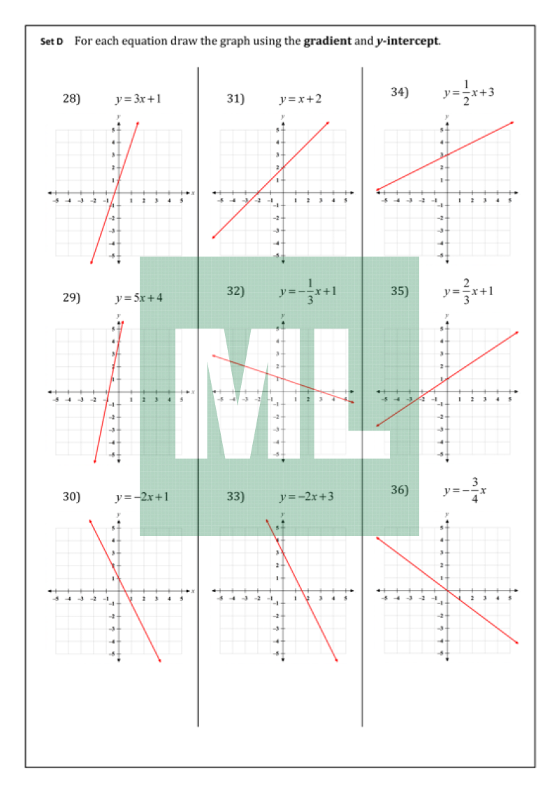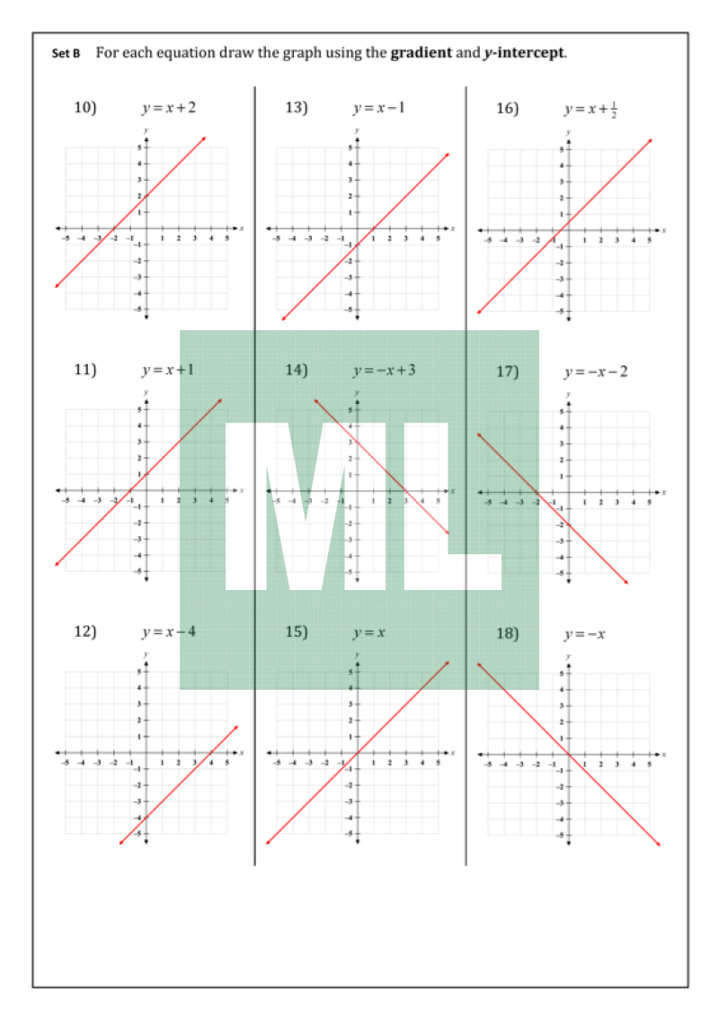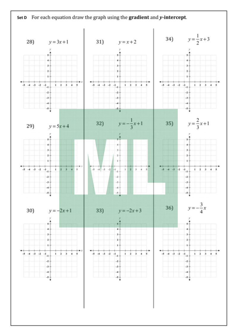 Graphing straight lines from the gradient-intercept form.