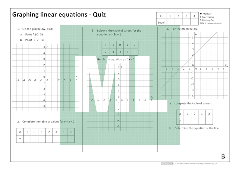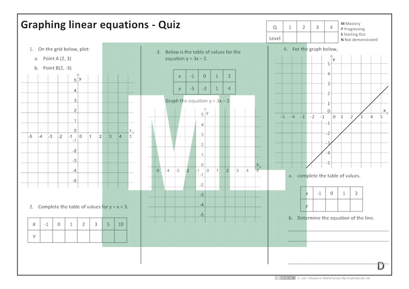 Four quizzes (ABQuiz) for Graphing Linear Equations - used with Year 8.