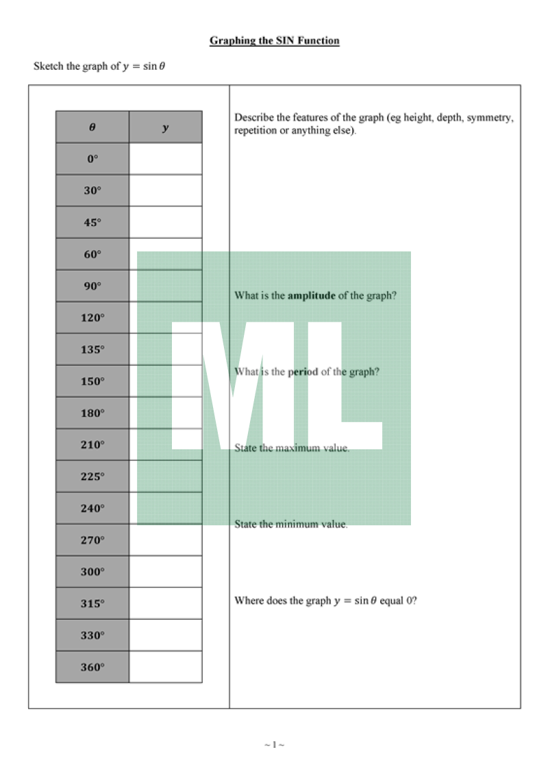 A worksheet on graphing (by hand and using a table of values) and examining the trig functions.