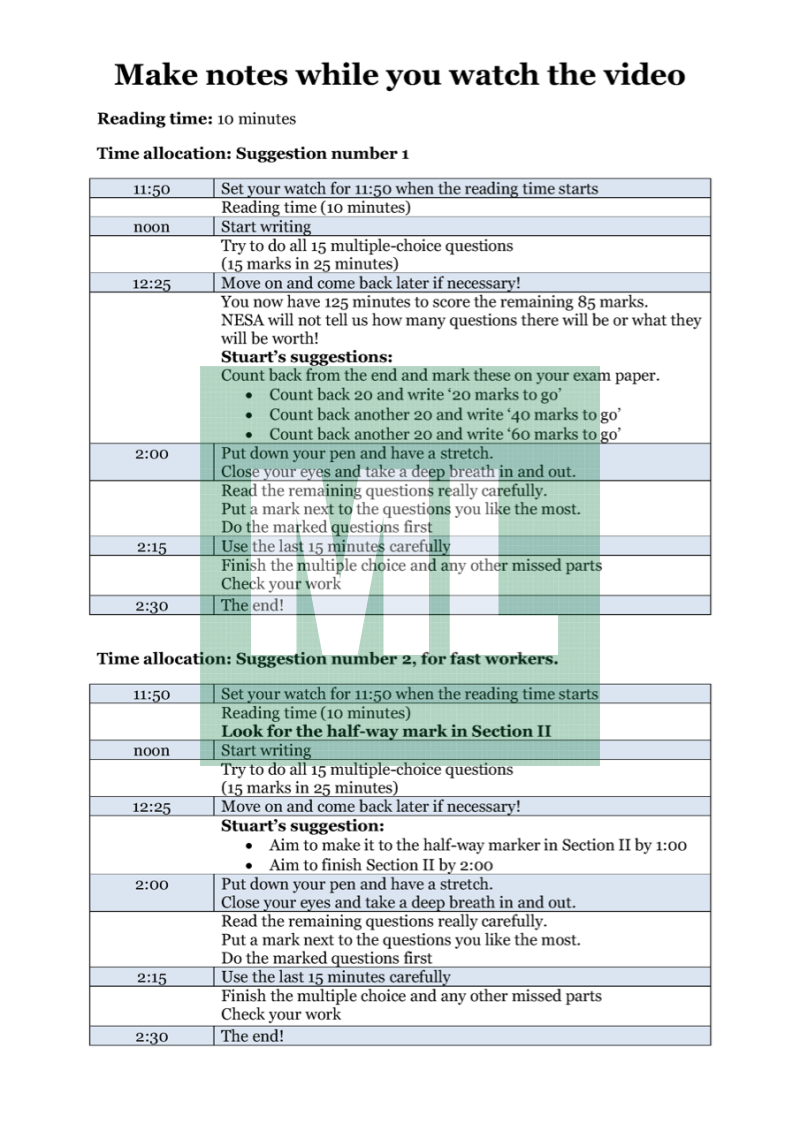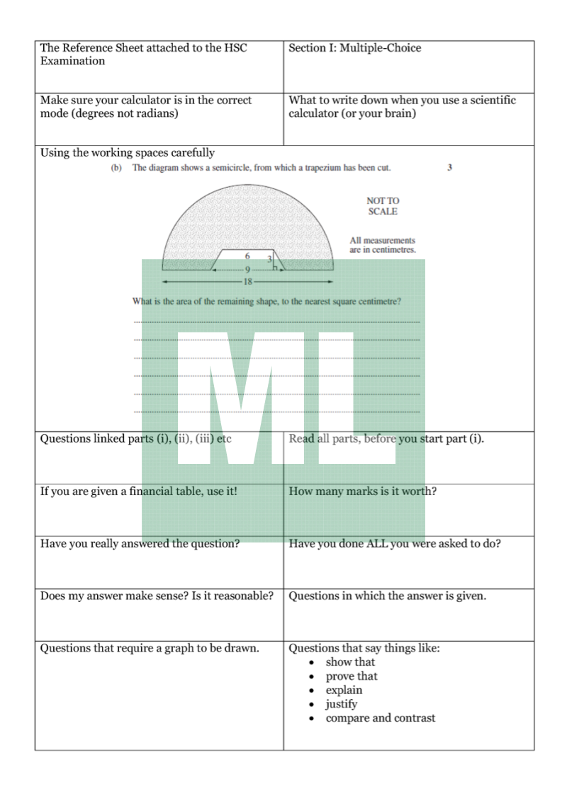 Stuart Palmer's unofficial compilation of tips and strategies for the Mathematics Standard 2 HSC Examination. Document to accompany the video.