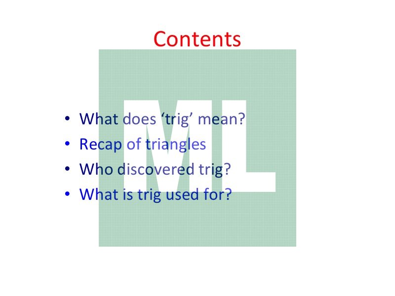 A powerpoint, aimed at Year 9, which introduces trig through its history and applications