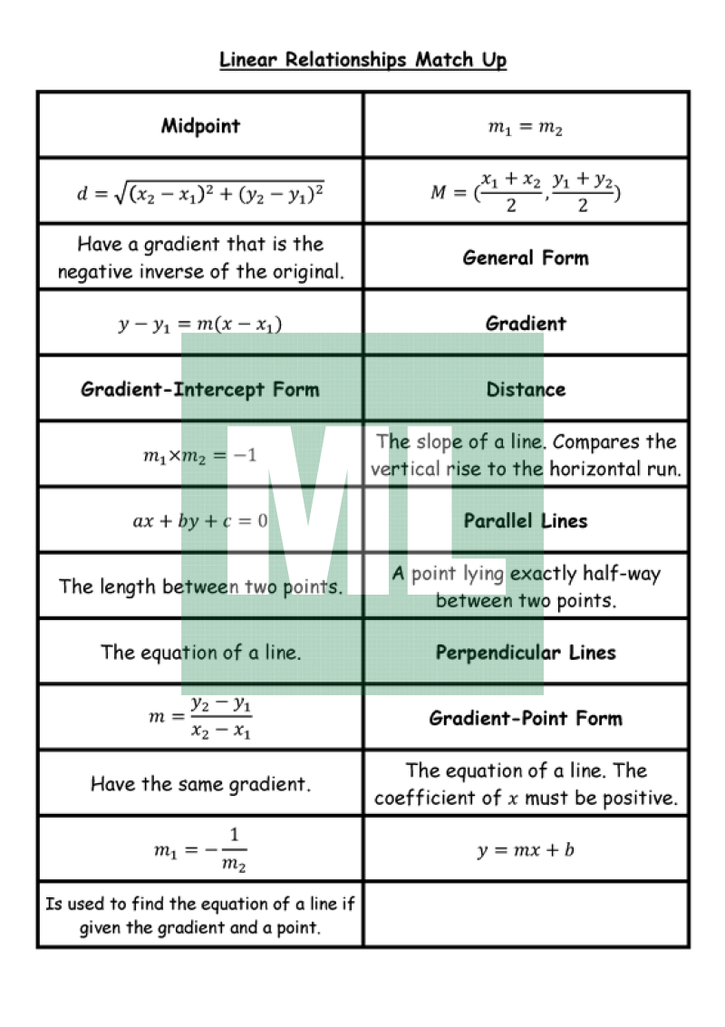 Towards the end of the topic I put together a formula and definition matching activity.