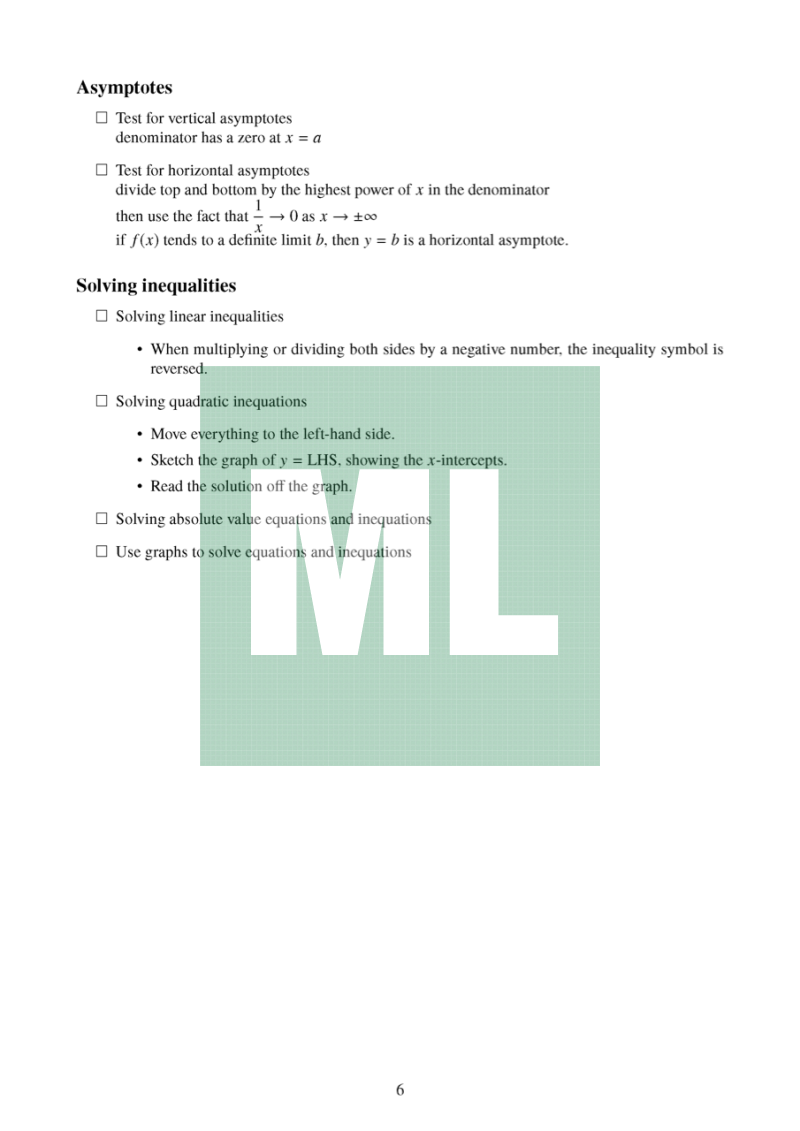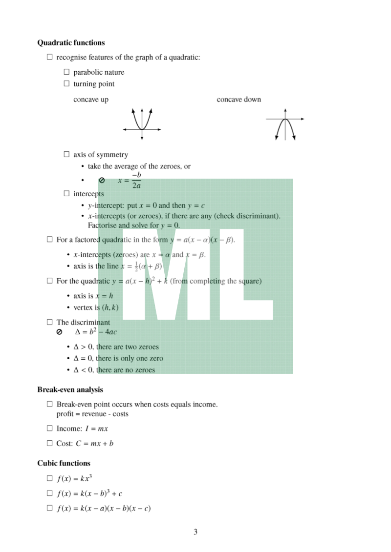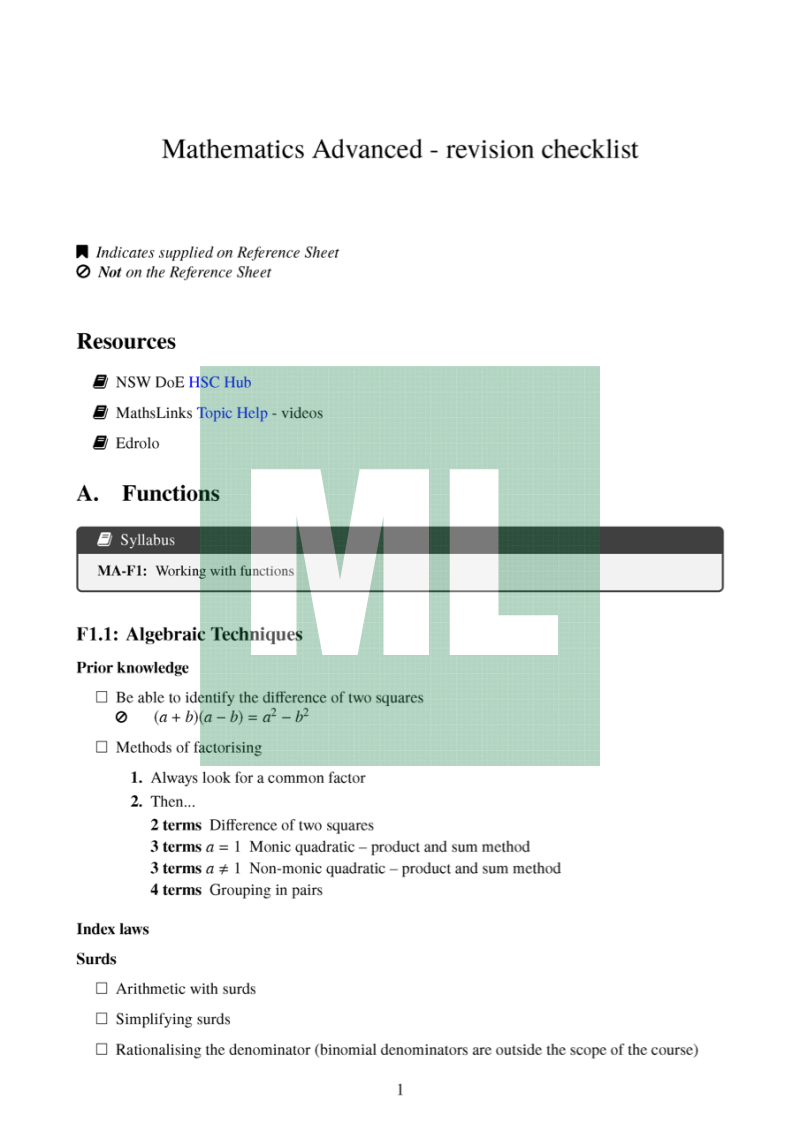 This is a revision checklist for Mathematics Advanced students to use as they prepared for the HSC Examination.