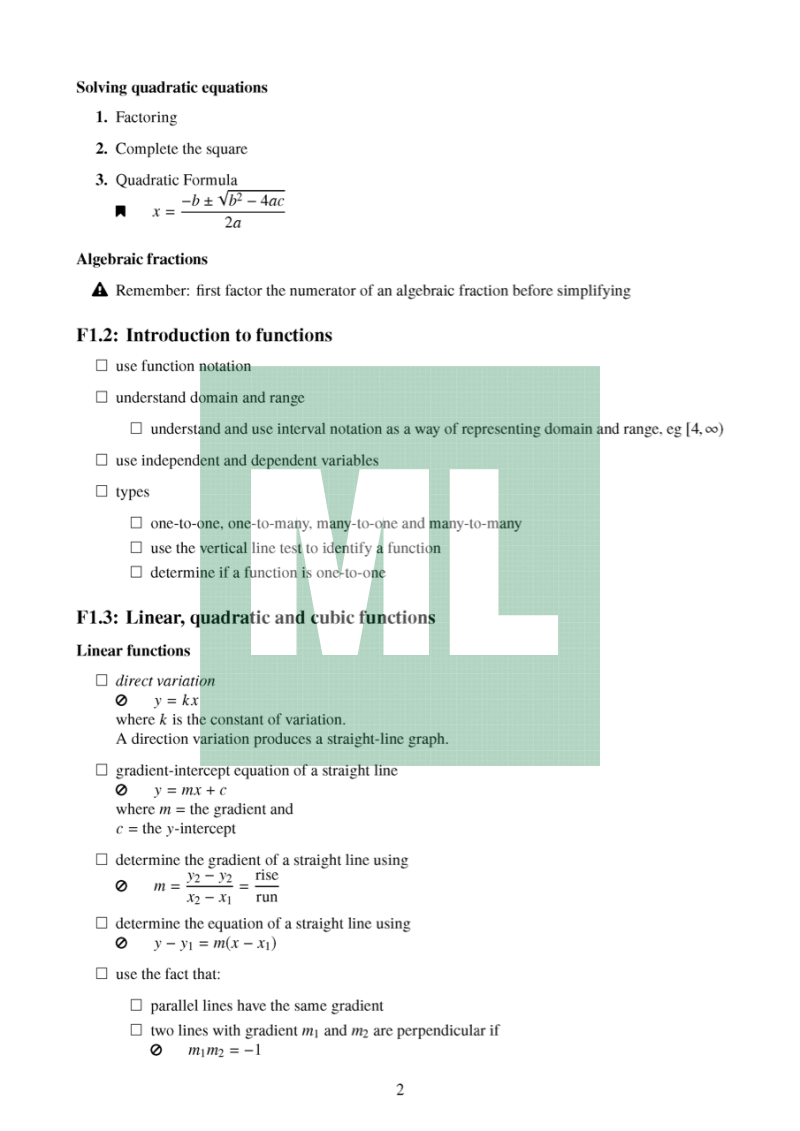 Attribution: Based on the Mathematics Advanced Stage 6 Syllabus, NESA.