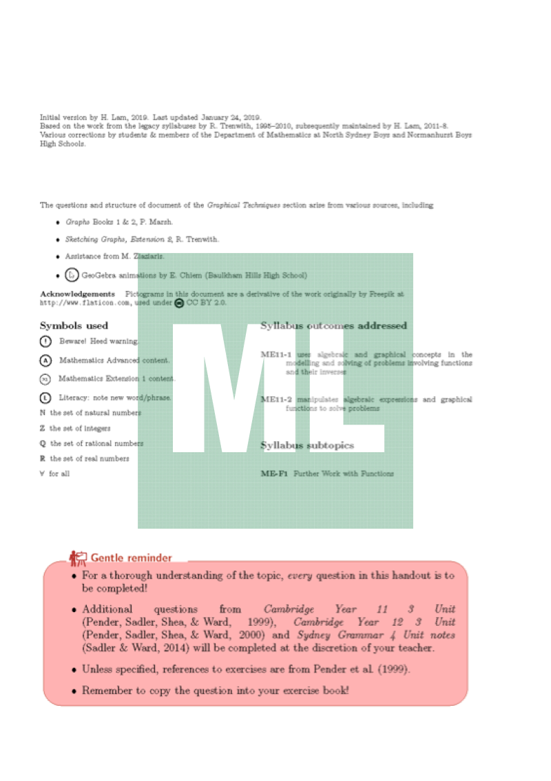Note: For some topics, the Extension 1 content has been included in the Advanced booklets. See: Mathematics Advanced and Extension 1 (2019) booklets.