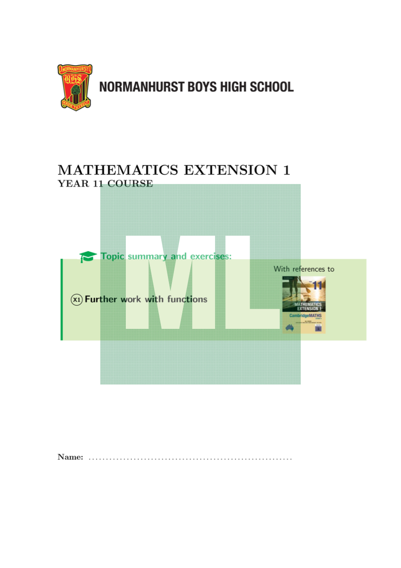 Course work booklets for the new Extension 1 course (2024 for implementation in 2026) in NSW.