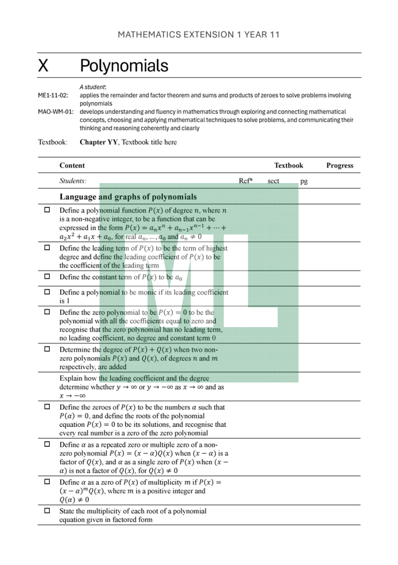 Student outlines for the Mathematics Extension 1 Year 11 course starting in 2026.