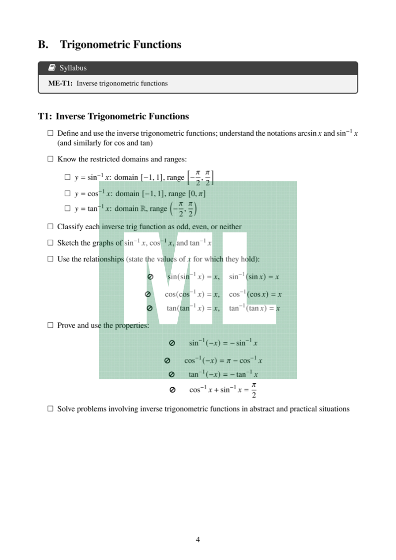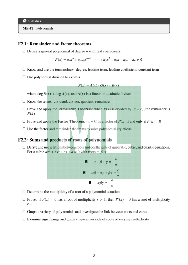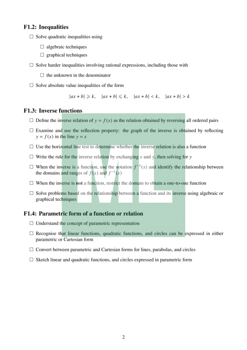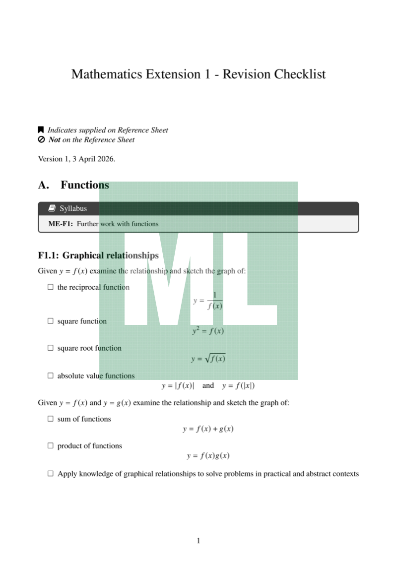 Attribution: Based on the Mathematics Extension 1 Stage 6 Syllabus (2017), NESA.