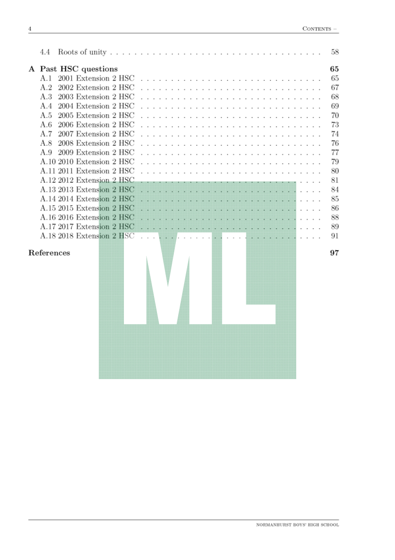 Course work booklets for the new Extension 2 (2019) course in NSW.