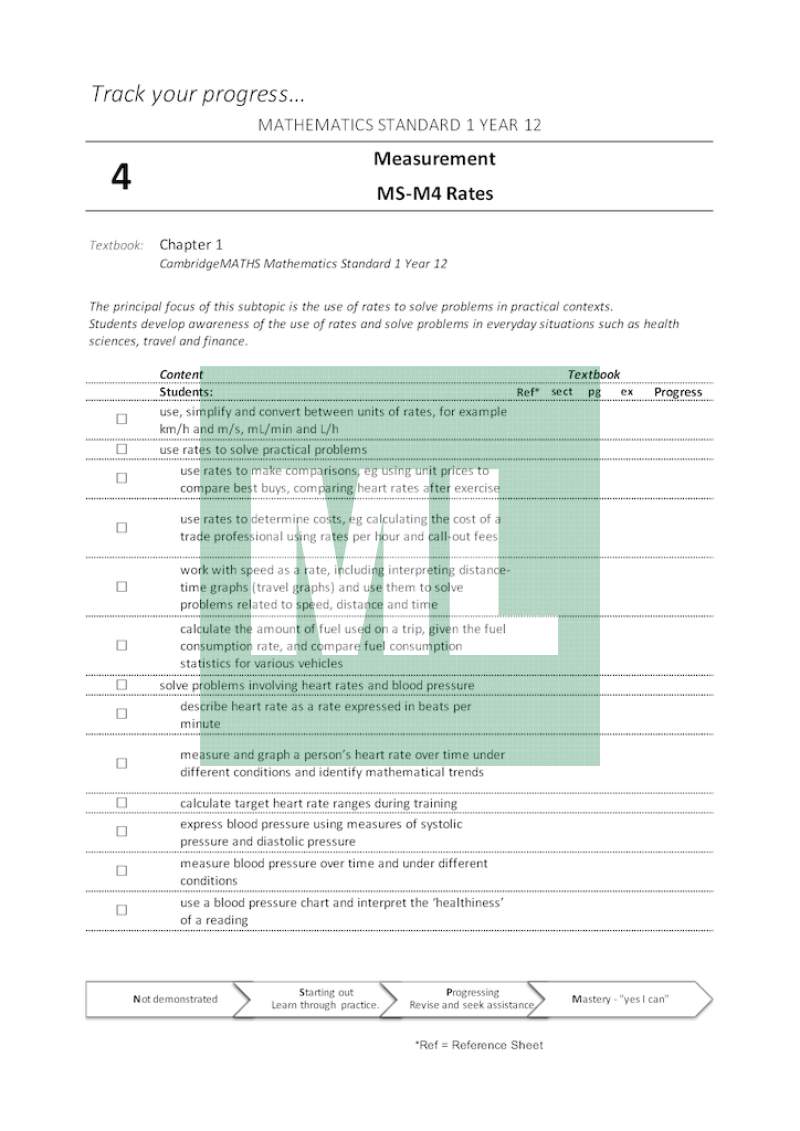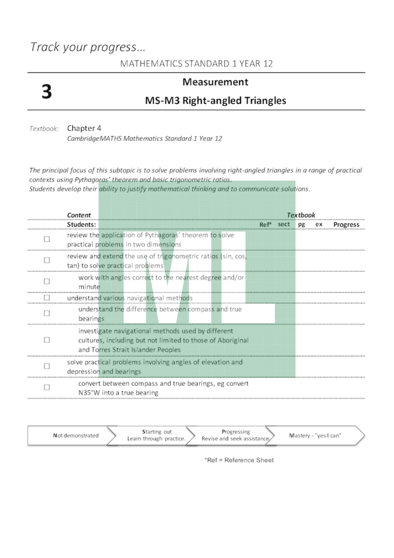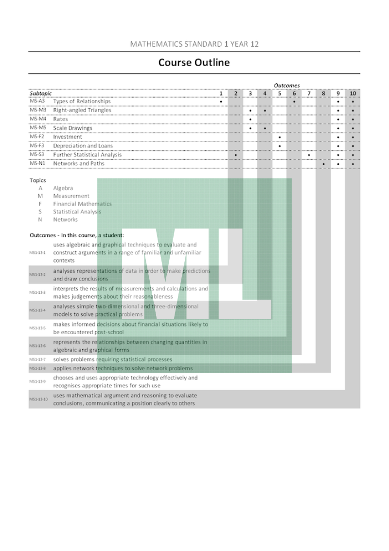 A course outline and student outlines / progress tracking for the Mathematics Standard 1 Year 12 course starting in Term 4 2018.