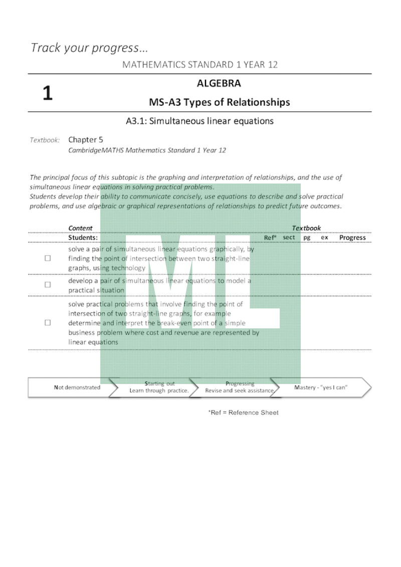 Attribution: Based on Mathematics Standard Stage 6 syllabus from NESA: http://educationstandards.nsw.edu.au/wps/portal/nesa/11-12/stage-6-learning-areas/stage-6-mathematics/mathematics-standard-2017 Published by Board of Studies NSW © 2012 Copyright Board of Studies NSW for and on behalf of the Crown in right of the State of New South Wales.