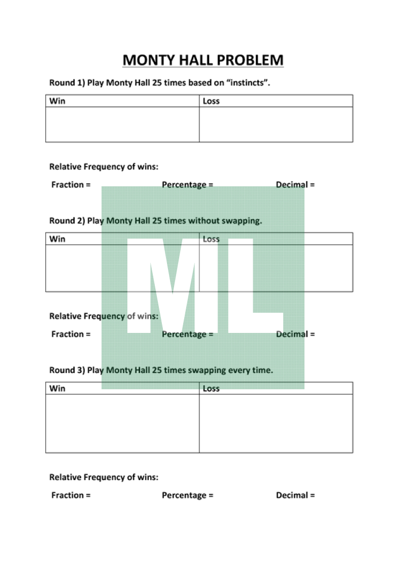 A worksheet to pair with a Monty Hall Simulator (see links).