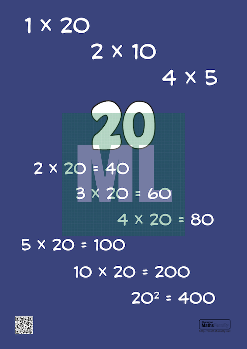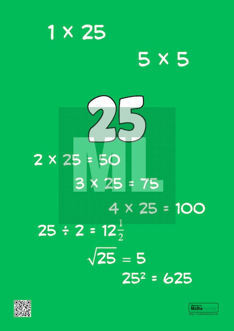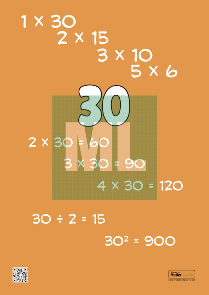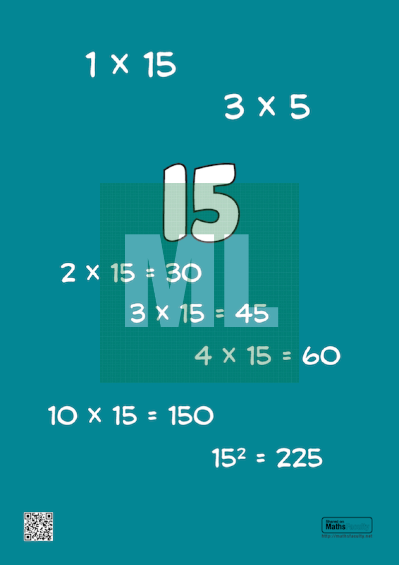 Posters to show and describe some properties of 15, 20, 25 and 30.