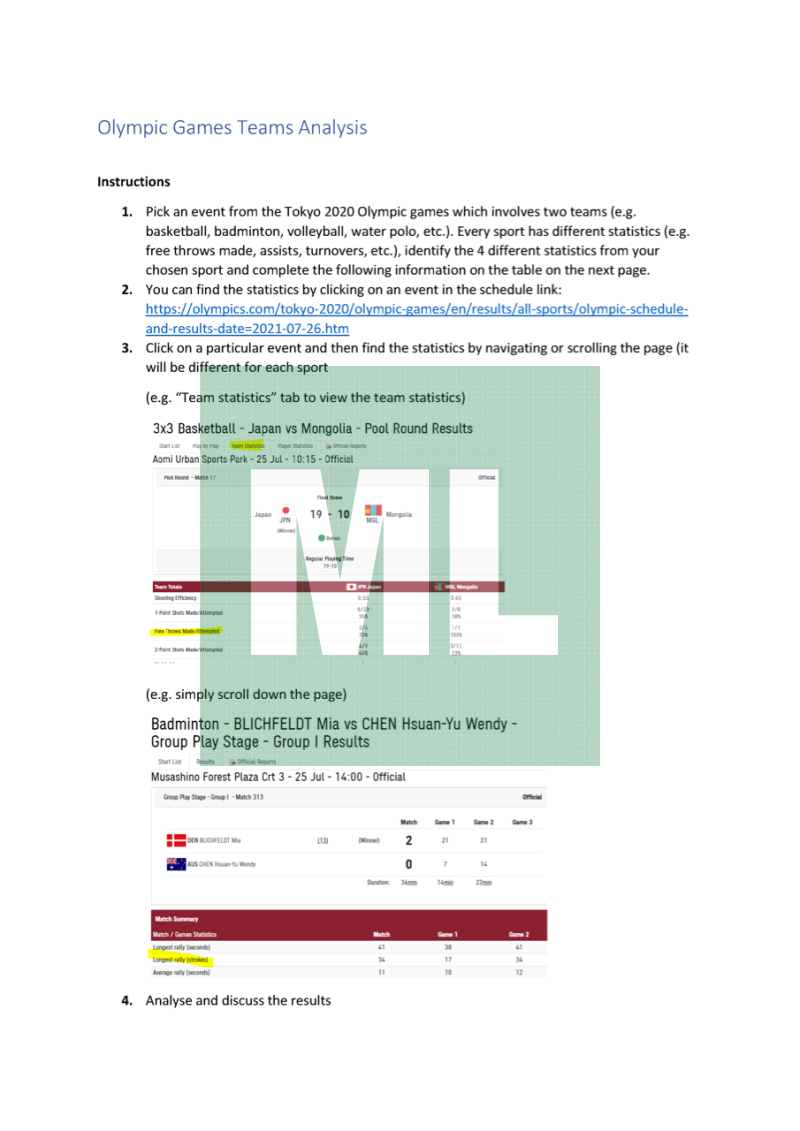 A statistics investigation of two chosen teams competing at the 2020 Tokyo Olympics.