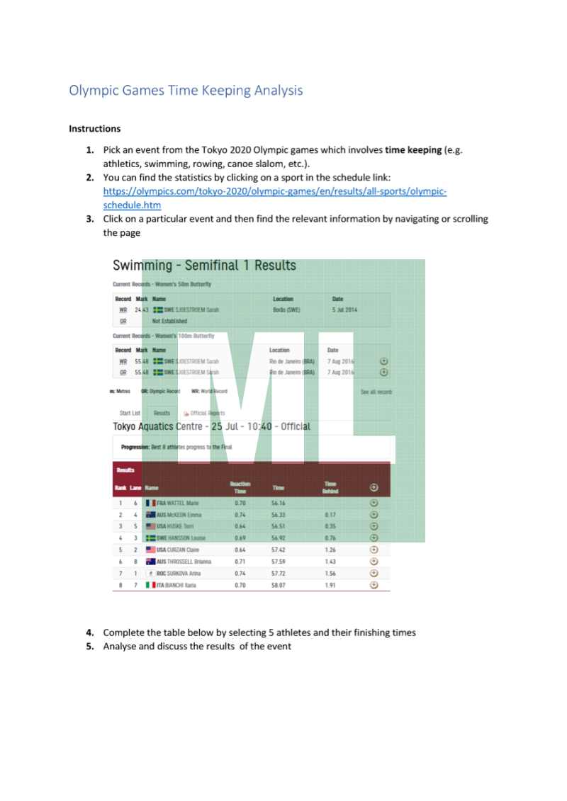 Analyse the timing statistics for an event at the 2020 Tokyo Olympics.
