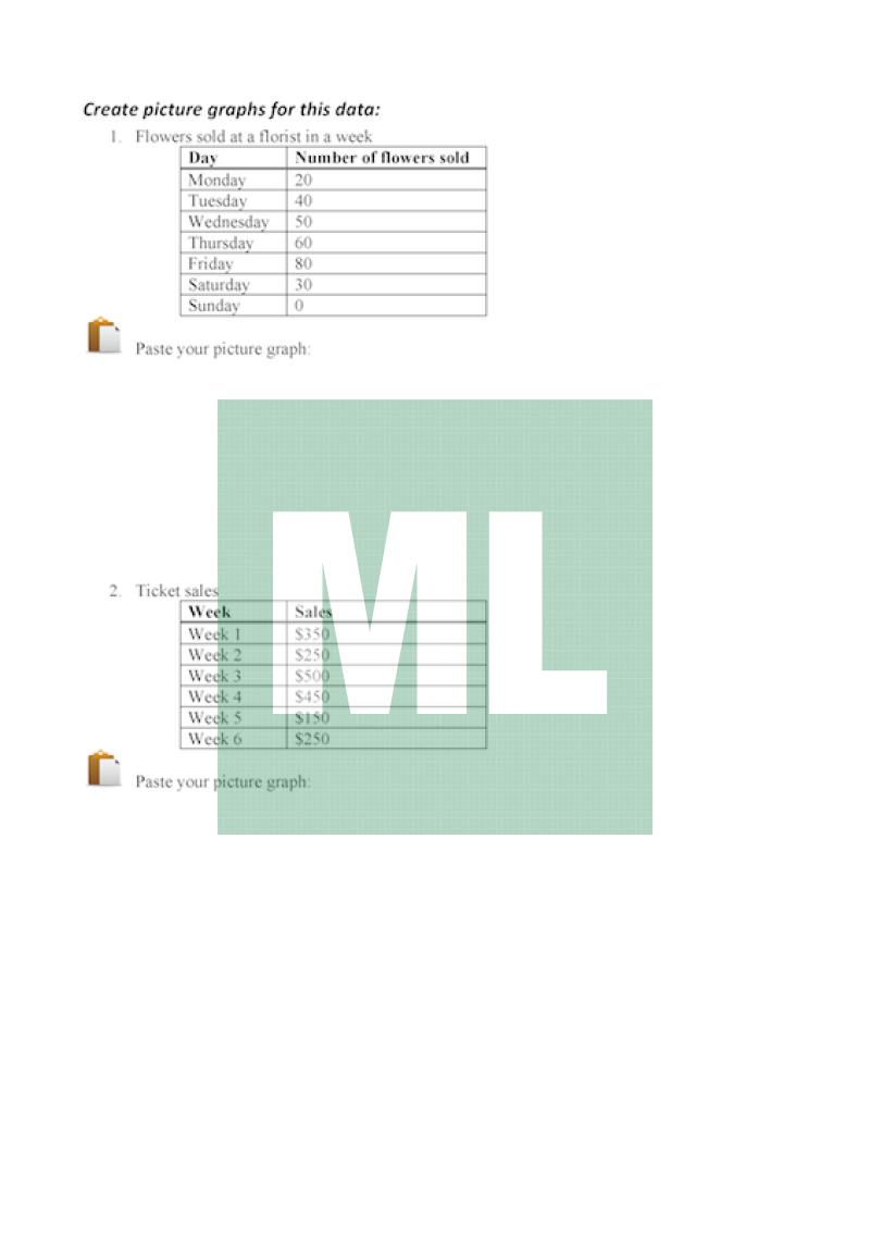 A worksheet to accompany the online tool Pictogram Graph.