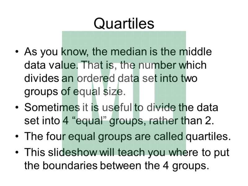 A PowerPoint explaining and giving examples about quartiles and the interquartile range.