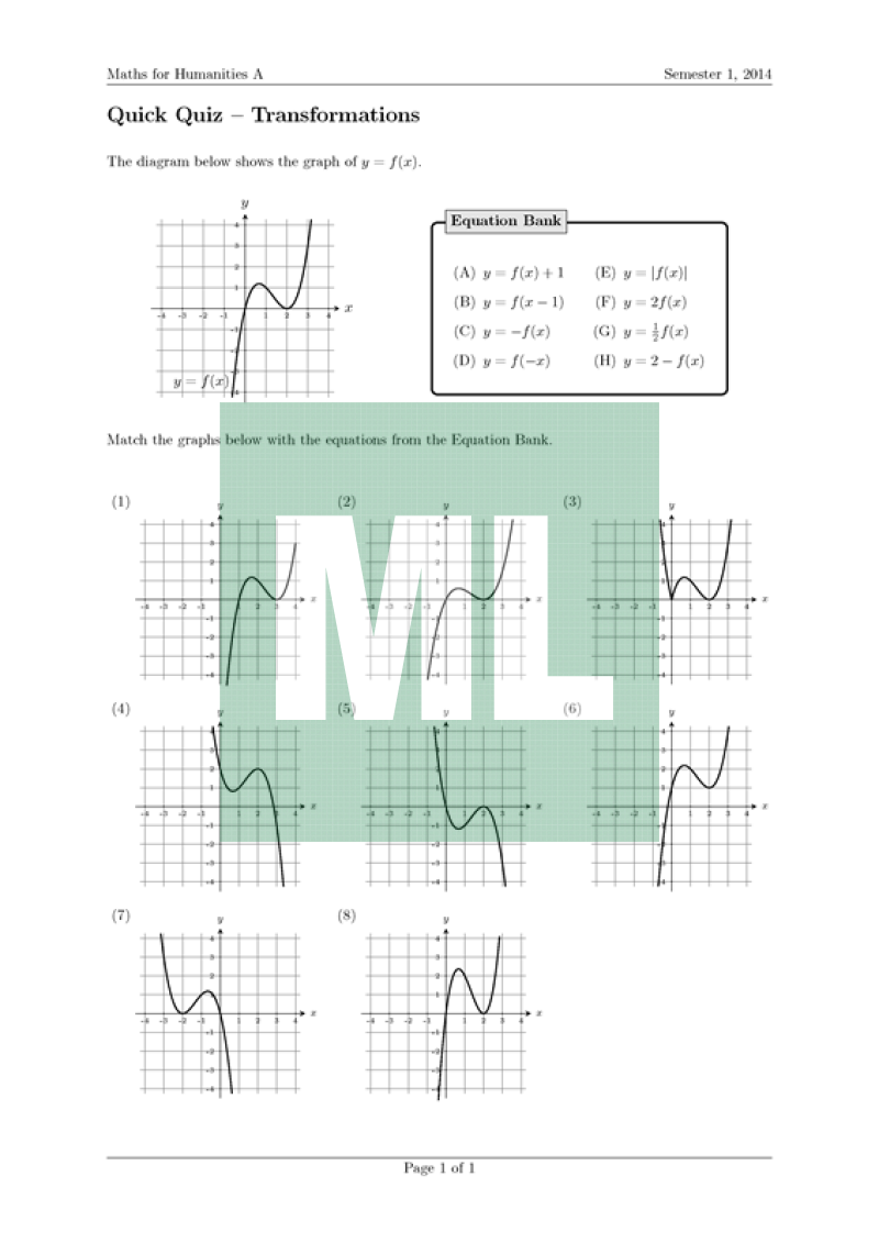 A quick quizz on transformations. I use this at the start of the lesson, when the stragglers are still getting to class. Because I teach classes with a high proportion of ESL students, I also get the students to describe each transformation in words, using the appropriate technical language.