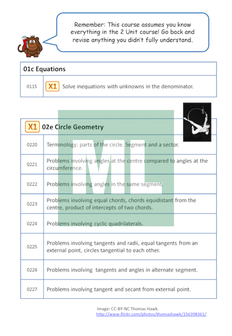 A revision summary checklist of the course content in Mathematics Extension 1 (only). Designed to be printed as an A5 booklet. Suitable for viewing in a PDF reader or on a table device.