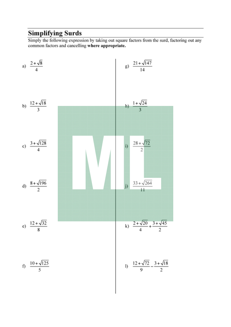 Year 10 were frustrating me a little with their simplification of surds and cancelling while using the quadratic formula. So I put together a quick reminder (should have been pre knowledge quiz stuff). Feel free to use.