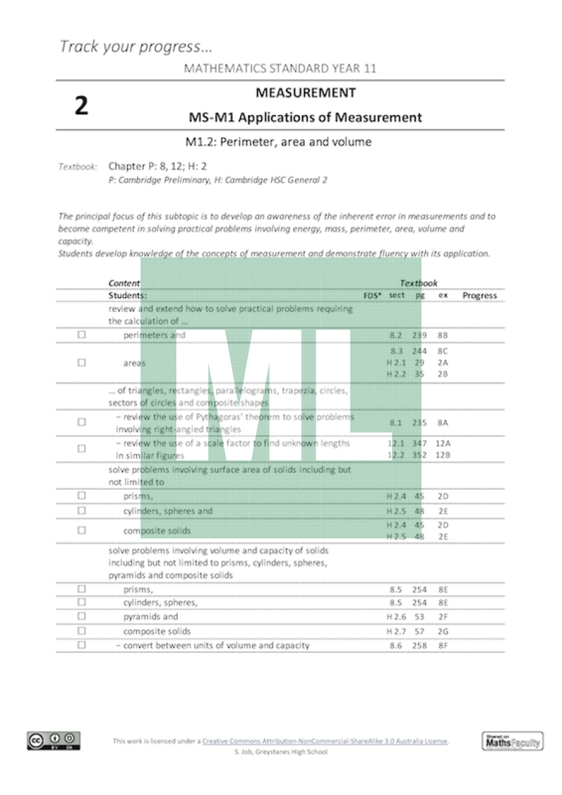 This is a student booklet for the Mathematics Standard topic M1.2 Perimeter, area and volume.