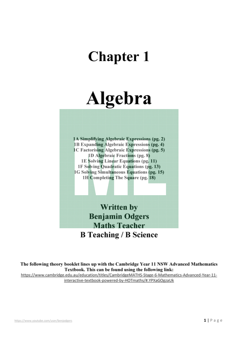 Attribution: These theory booklets line up with the CambridgeMATHS Stage 6 Mathematics Advanced Year 11 textbook.