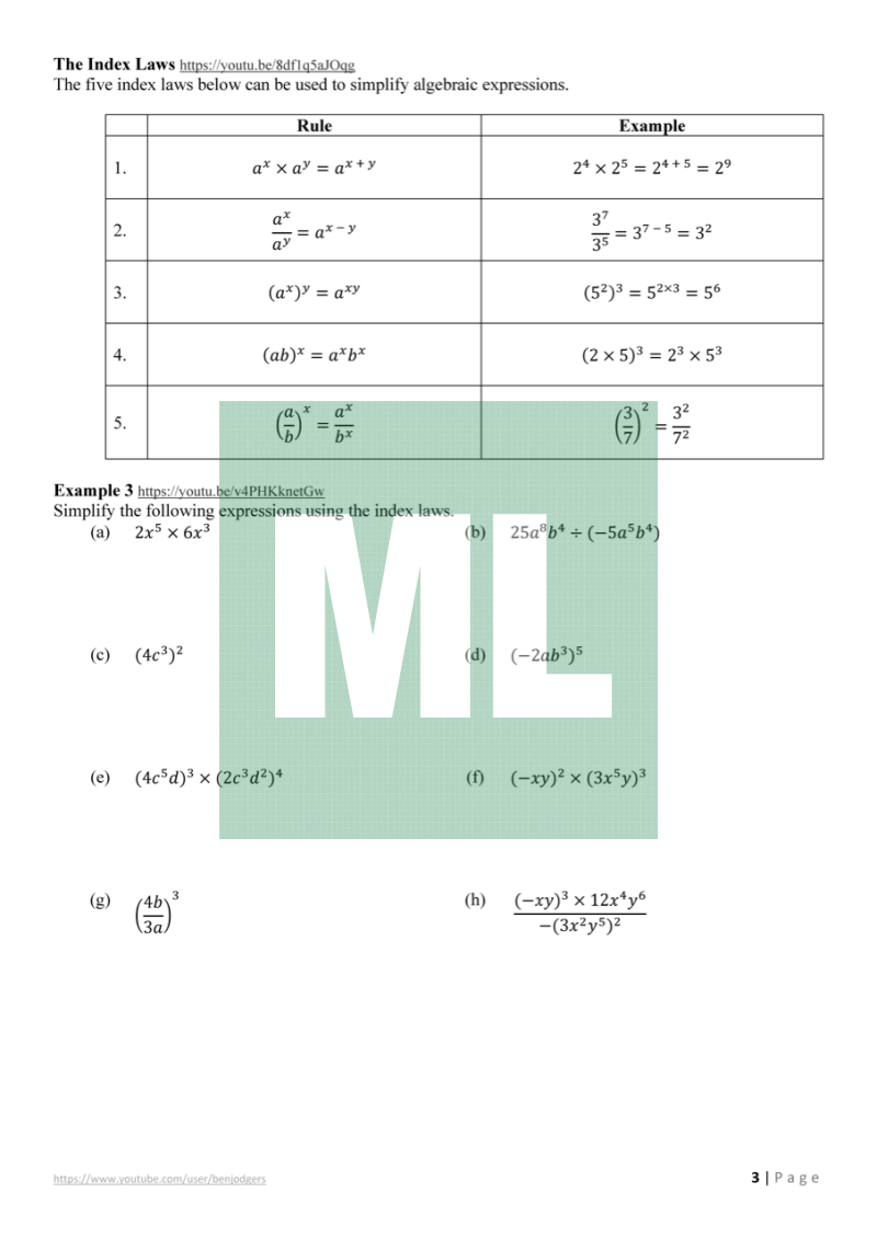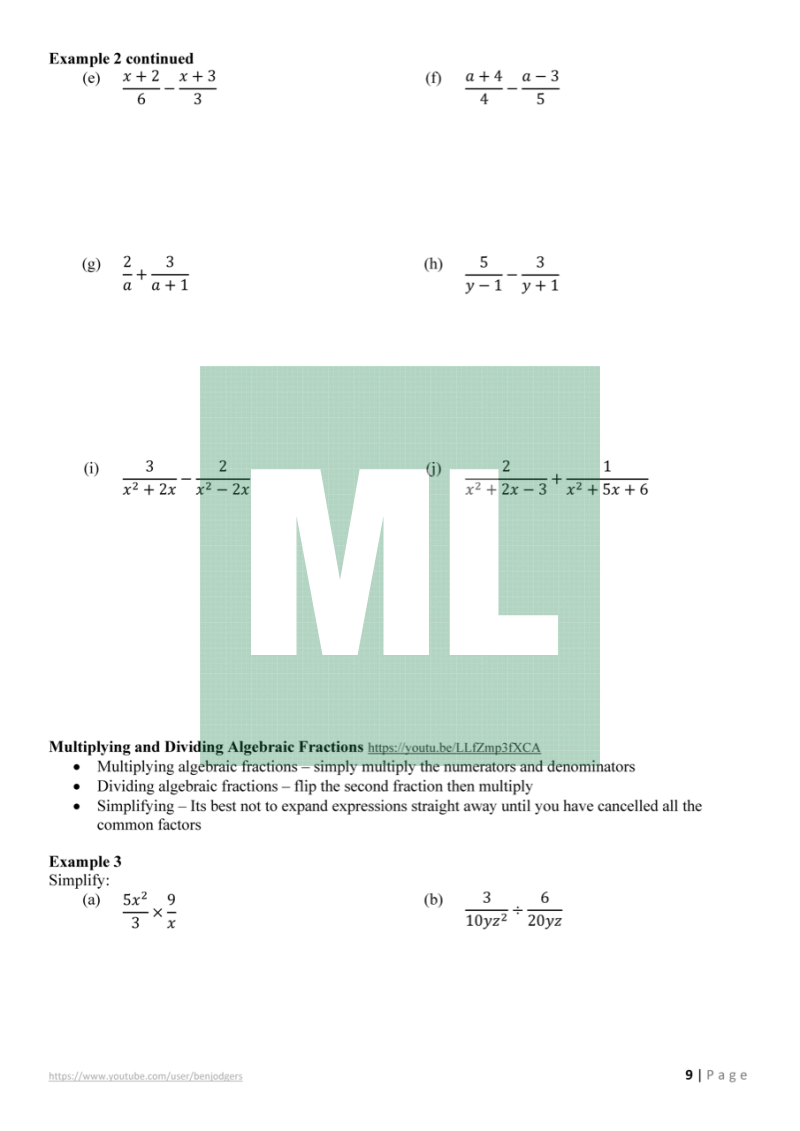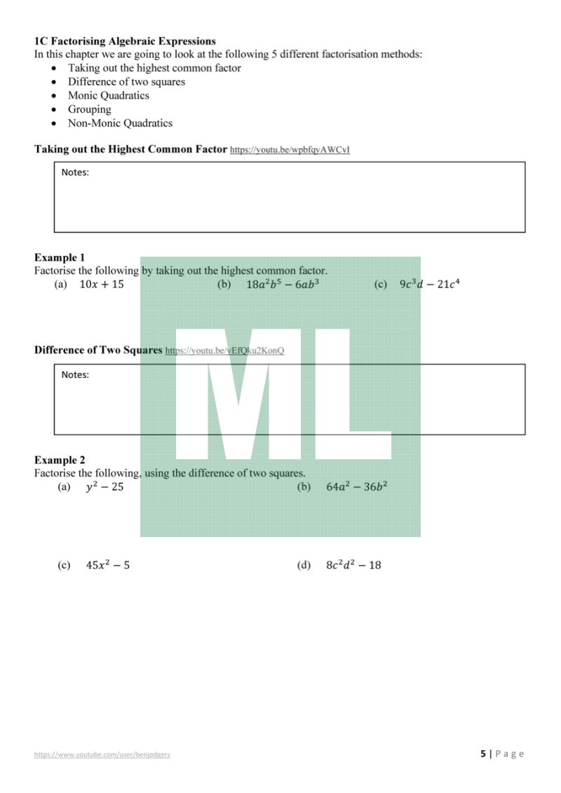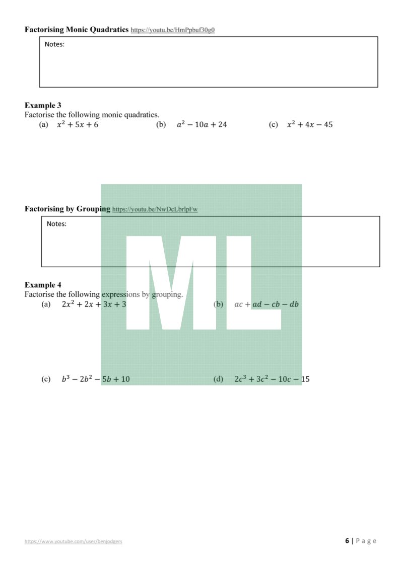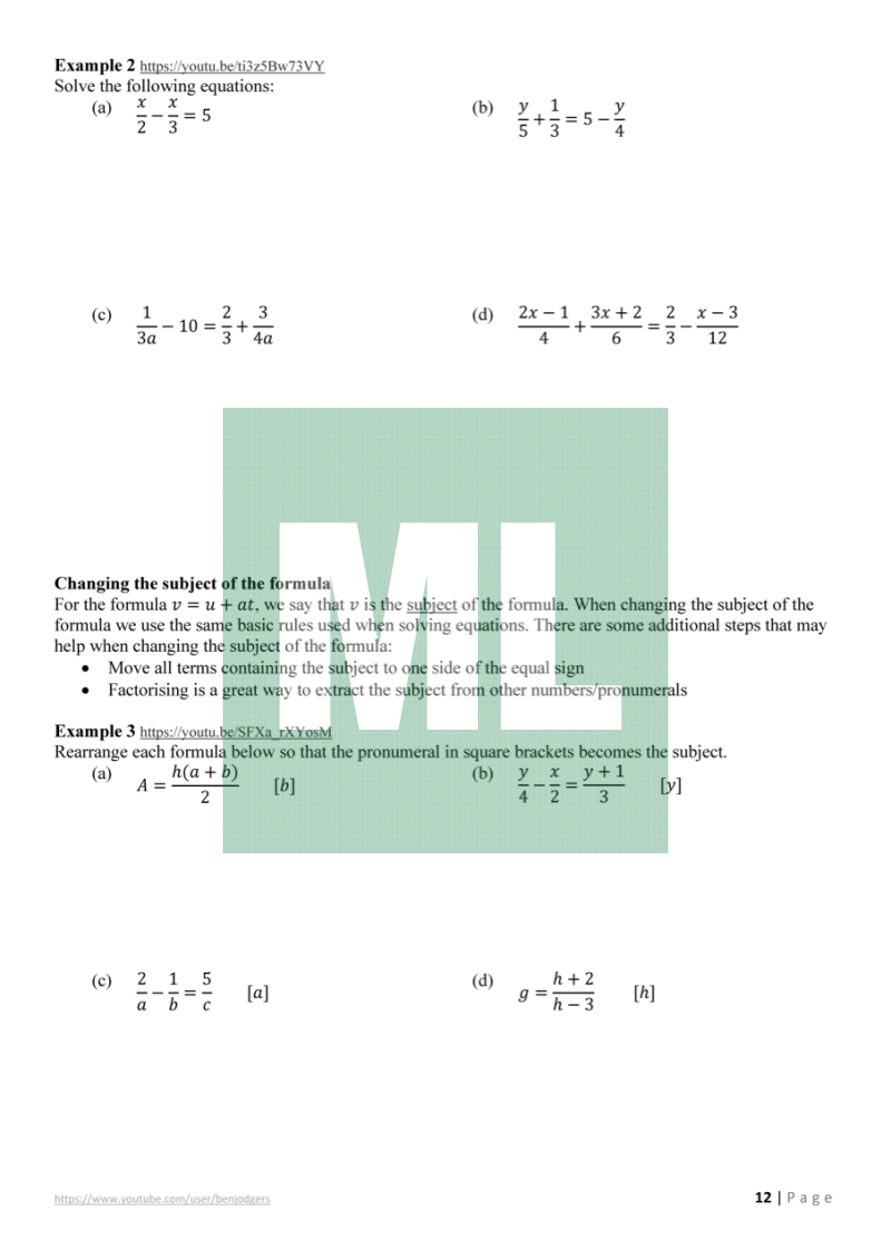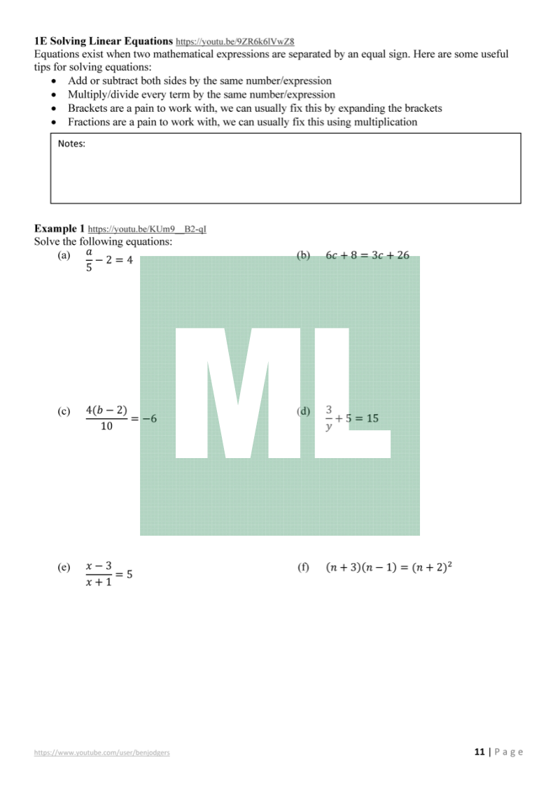 Theory work booklets with links to YouTube videos for the Year 11 Mathematics Advanced (NSW) course.