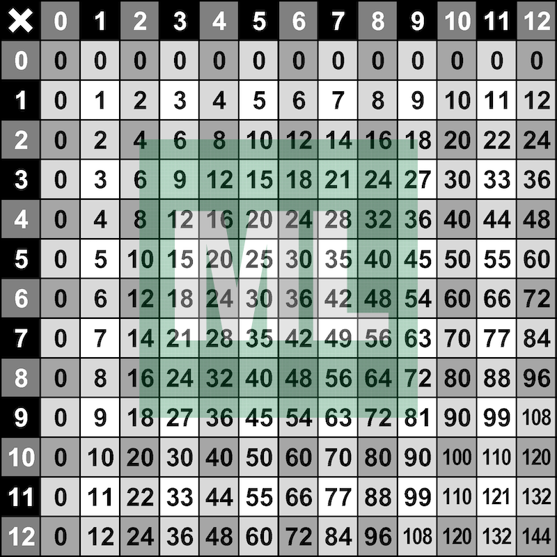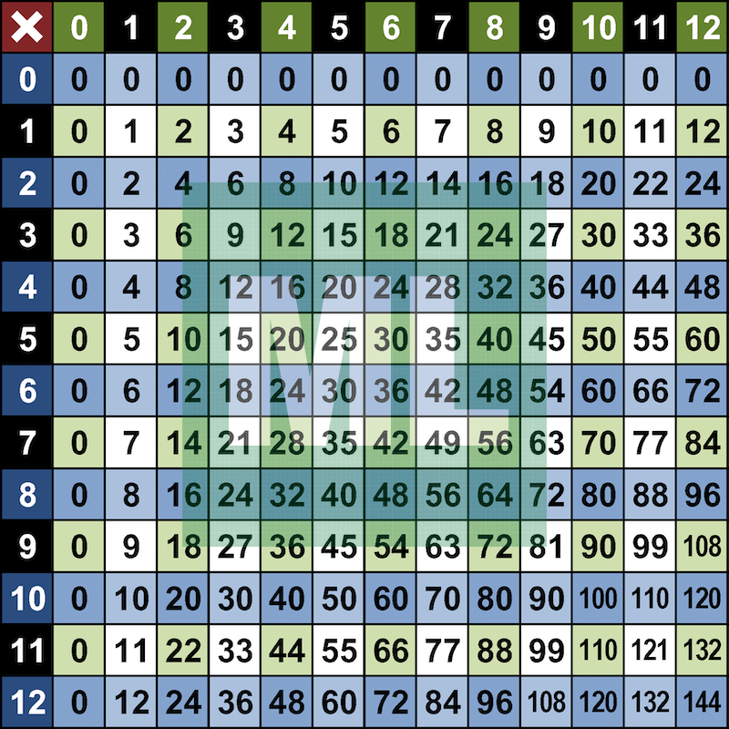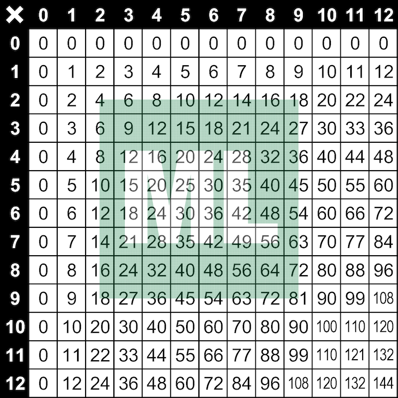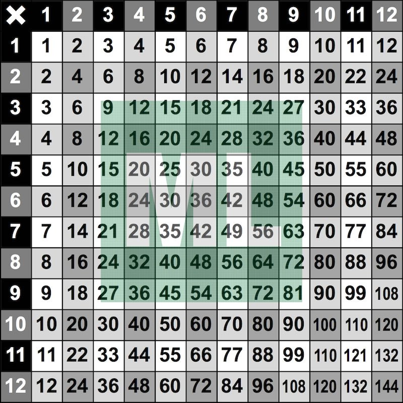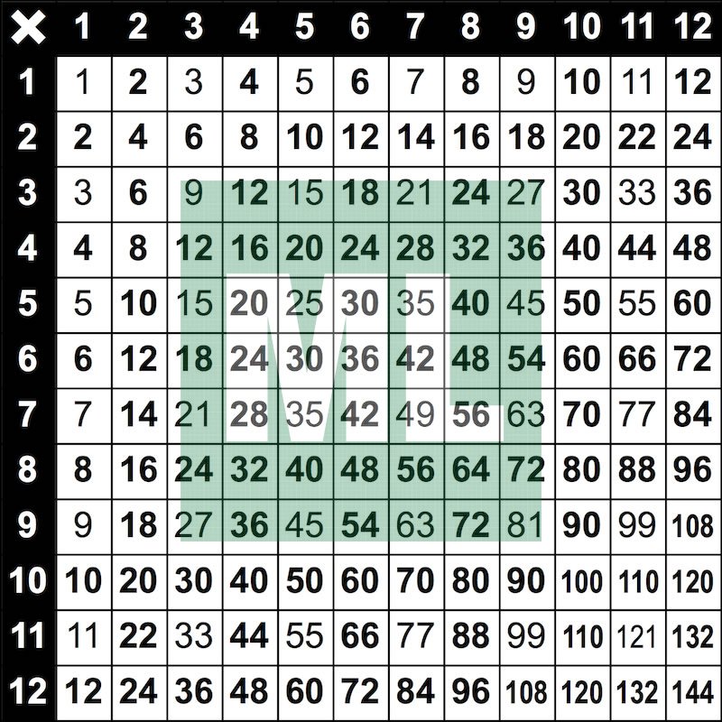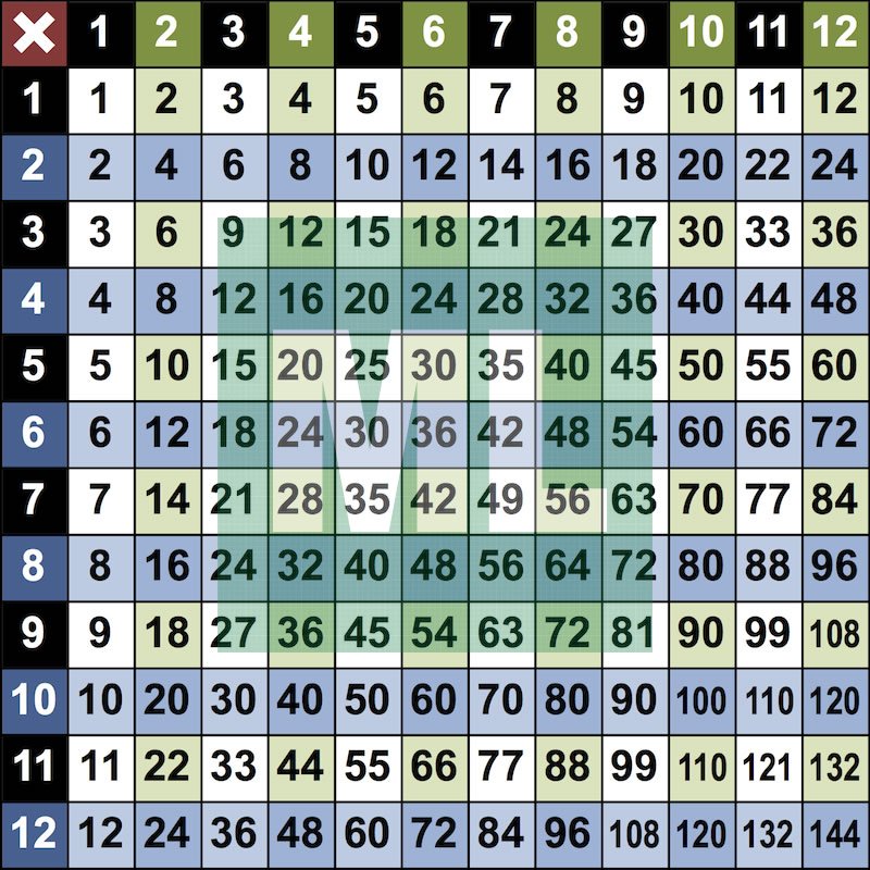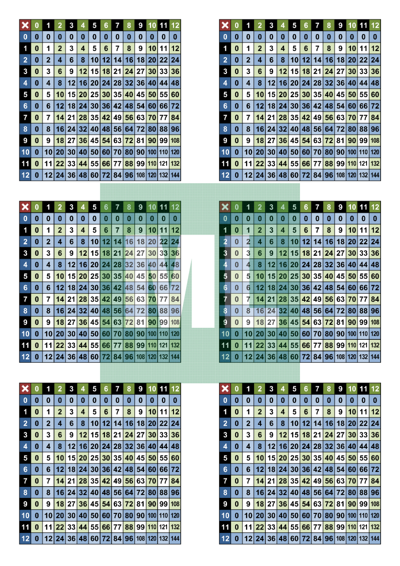 A variety of Times Tables grids - a wall poster, high quality image files, and PDFs with 6 per page.
