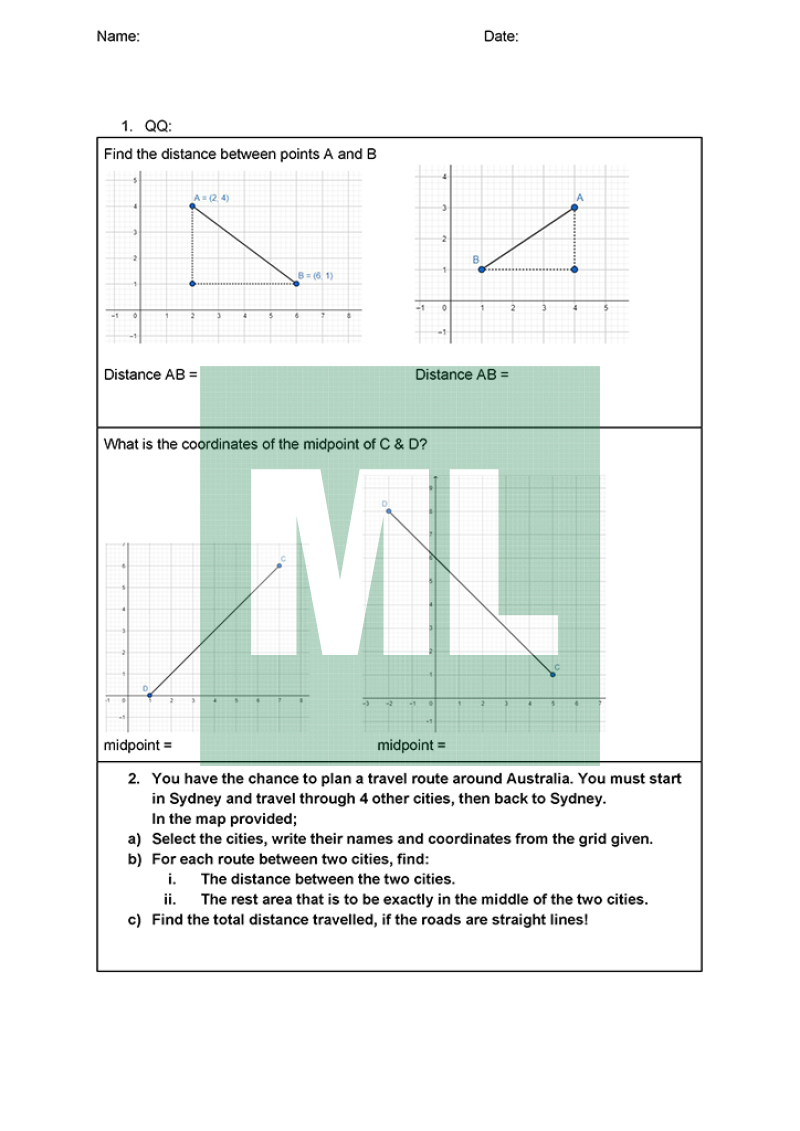 Travel through Australia, finding distances and midpoints from the map on the grid.