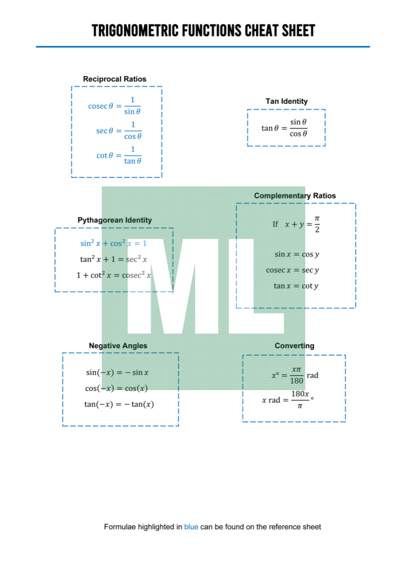 Trigonometric cheat sheets for