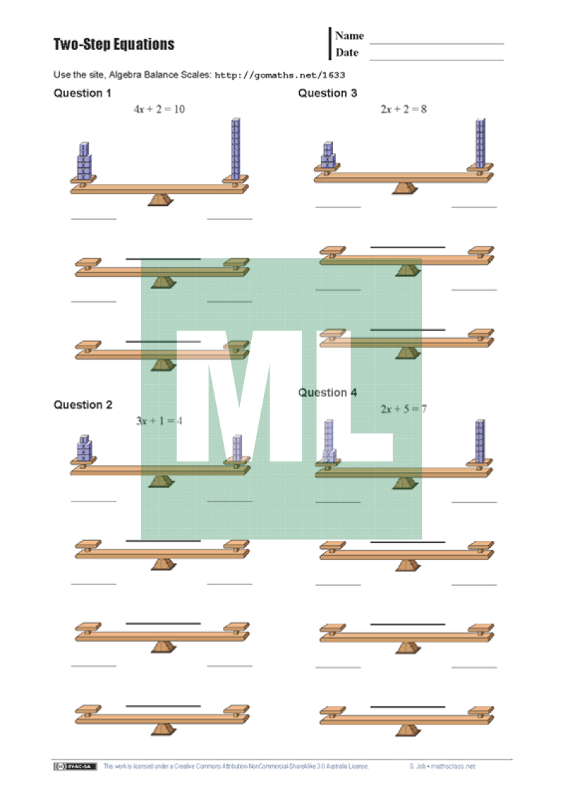 A worksheet to accompany the “Algebra Balance Scales” manipulatives from the National Library of Virtual Manipulatives.